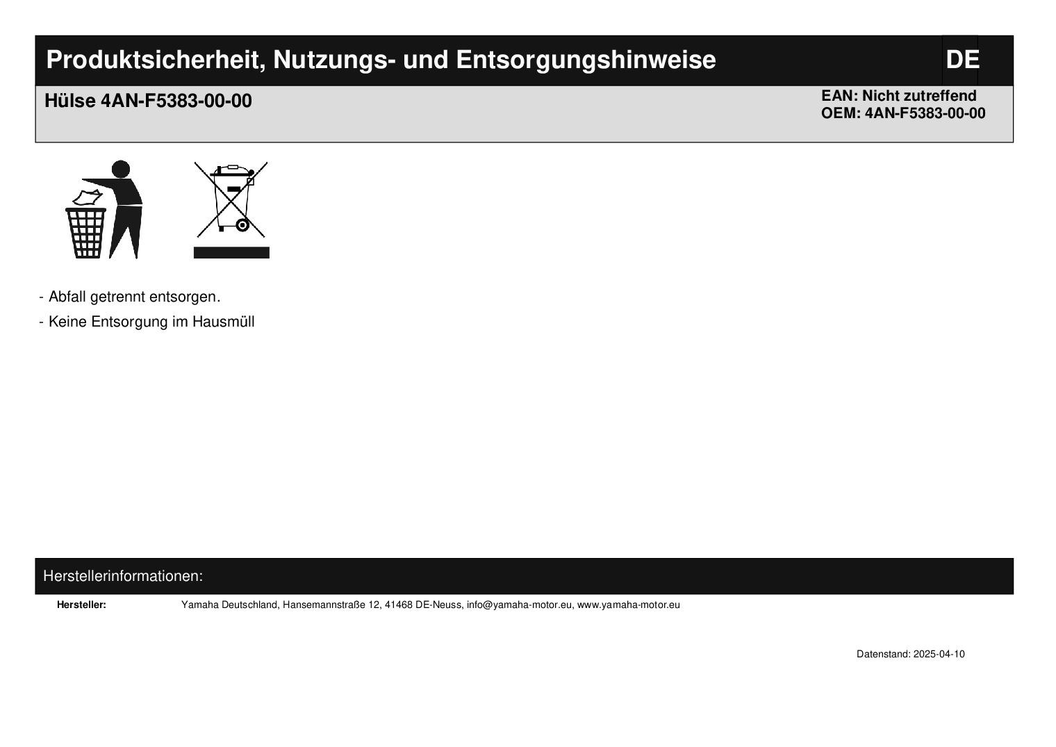 In dieser Auktion gibt es folgenden Artikel zu kaufen: Hülse (siehe Foto) Modell: Yamaha Bj.: Lieferumfang: siehe Foto Artikelzustand: neu aus Geschäftsauflösung, mit minimalen Lagerspuren; Zustand siehe Foto Bei Unklarheiten oder Fragen bitte erst E-Mail schreiben.