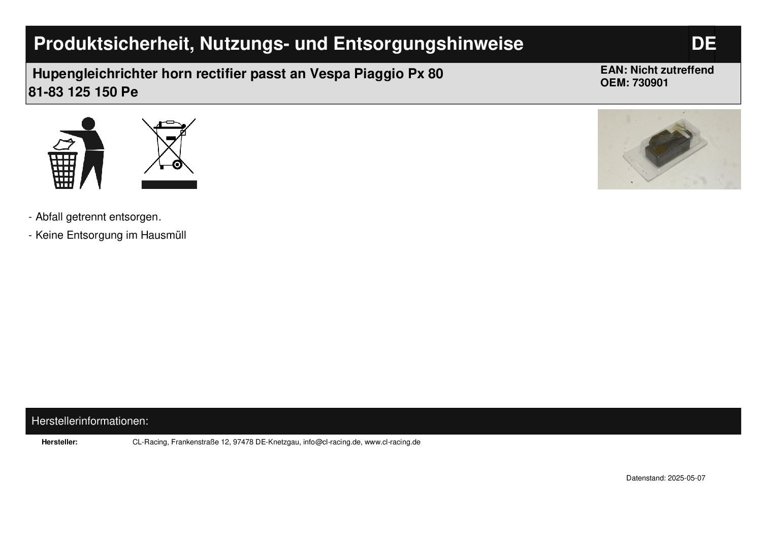 In dieser Auktion gibt es folgenden Artikel zu kaufen: Hupengleichrichter (siehe Foto) Modell: passend für Vespa Piaggio PX 80 Bj.: 81 - 83 PX 125 Bj.: 77 - 82 PX 150 Bj.: 78 - 82 PE 200 Bj.: 77 - 82 Lieferumfang: siehe Foto Artikelzustand: neu aus Geschäftsauflösung, mit leichten Lagerspuren; Zustand siehe Foto Bei Unklarheiten oder Fragen bitte erst E-Mail schreiben.