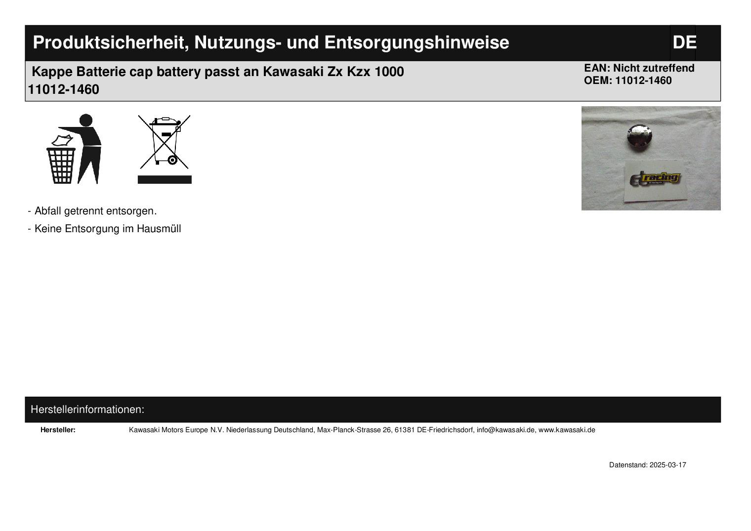 In dieser Auktion gibt es folgenden Artikel zu kaufen: Kappe für Rahmen (siehe Foto) Fahrzeug: passend für Kawasaki ZX 1000 Bj.: unbekannt KZX 1000 Bj.: unbekannt Lieferumfang: siehe Foto Artikelzustand: neu aus Geschäftsauflösung, mit leichten Lagerspuren; Zustand siehe Foto Bei Unklarheiten oder Fragen bitte erst E-Mail schreiben.