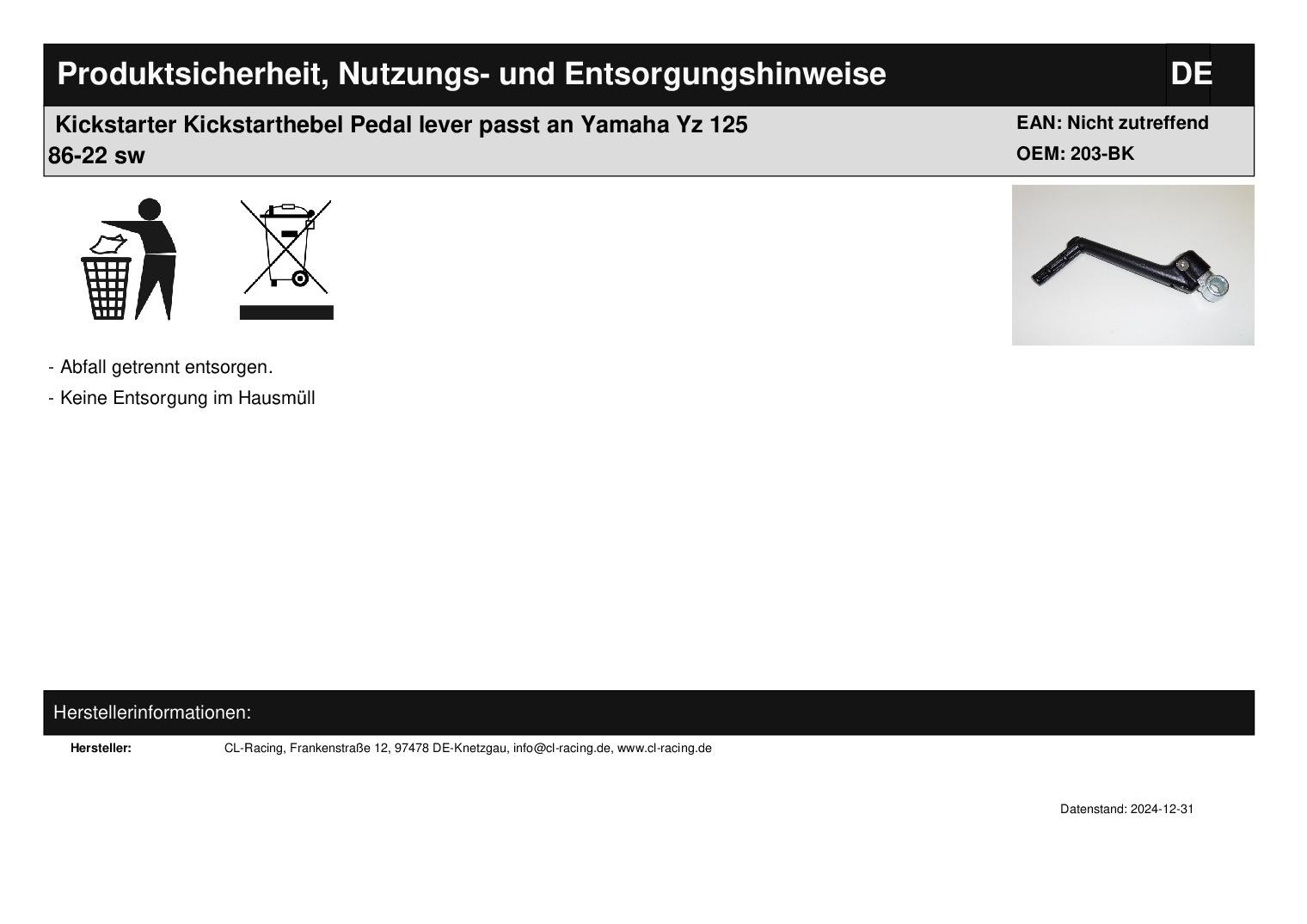 In dieser Auktion gibt es folgenden Artikel zu kaufen: Kickstarter (siehe Foto) Modell: passend für Yamaha YZ 125 Bj.: 1986 - 2022 (2-Takt) Lieferumfang: 1 Stück Artikelzustand: neu Bei Unklarheiten oder Fragen bitte erst E-Mail schreiben.