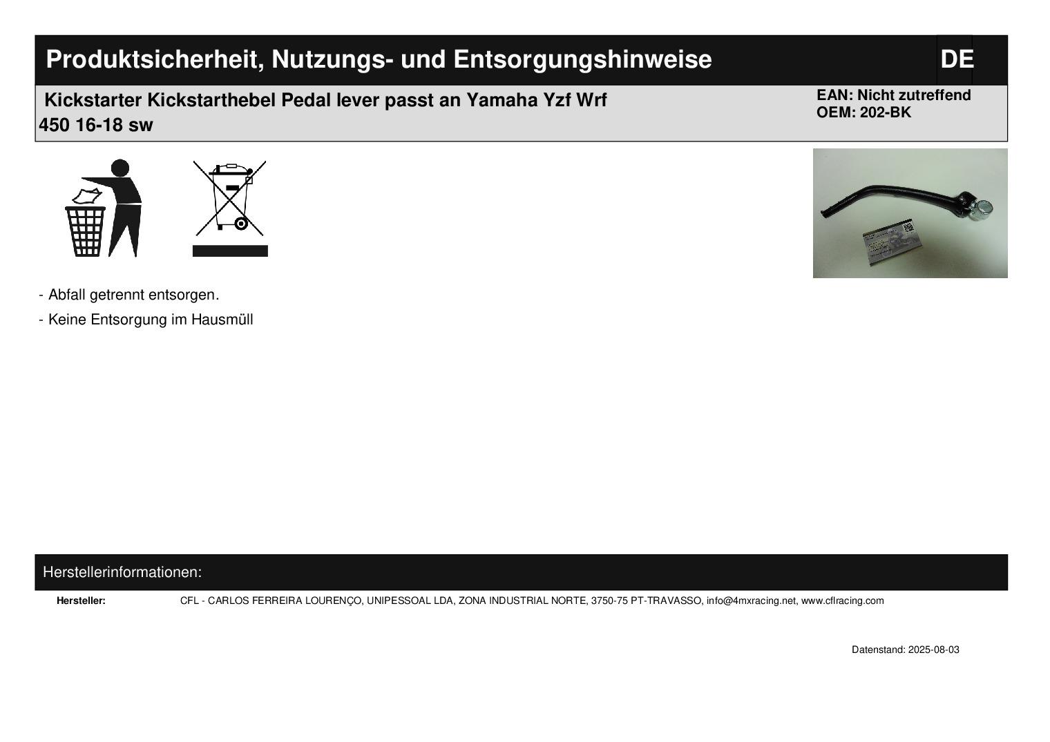 In dieser Auktion gibt es folgenden Artikel zu kaufen: Kickstarter (siehe Foto) Modell: passend für Yamaha YZF 450 Bj.: 2011 - 2018 (4-Takt) WRF 450 Bj.: 2016 - 2018 (4-Takt) Lieferumfang: 1 Stück Artikelzustand: neu Bei Unklarheiten oder Fragen bitte erst E-Mail schreiben.