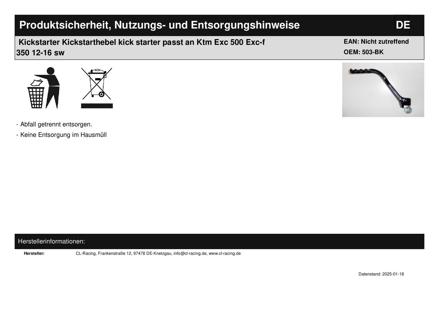 In dieser Auktion gibt es folgenden Artikel zu kaufen: Kickstarter (siehe Foto) Modell: passend für Ktm SX 250 Bj.: 11 - 16 XC 250 Bj.: 11 - 16 XC 300 Bj.: 11 - 15 SXF 250 Bj.: 11 EXC 500 Bj.: 12 - 16 EXC-F 350 Bj.: 12 - 16 XC-W 250, 450 Bj.: 11 - 16 XC-W 500 Bj.: 12 - 16 XC-F 250 Bj.: 11 - 12 XC-F 300 Bj.: 11 - 15 XCF-W 250, 350 Bj.: 12 - 16 passend für Husqvarna TC 250 Bj.: 14 - 16 TE 250 Bj.: 14 - 16 TE 300 Bj.: 14 - 16 Lieferumfang: 1 Stück Artikelzustand: neu Es handelt sich hierbei um kein Originalteil! Bei Unklarheiten oder Fragen bitte erst E-Mail schreiben.