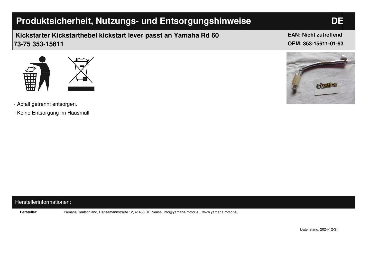 In dieser Auktion gibt es folgenden Artikel zu kaufen: Kickstarter (siehe Foto) Modell: passend für Yamaha RD 60 Bj.: 73 - 75 Lieferumfang: siehe Foto Artikelzustand: neu aus Geschäftsauflösung, mit leichten Lagerspuren; Zustand siehe Foto Bei Unklarheiten oder Fragen bitte erst E-Mail schreiben.