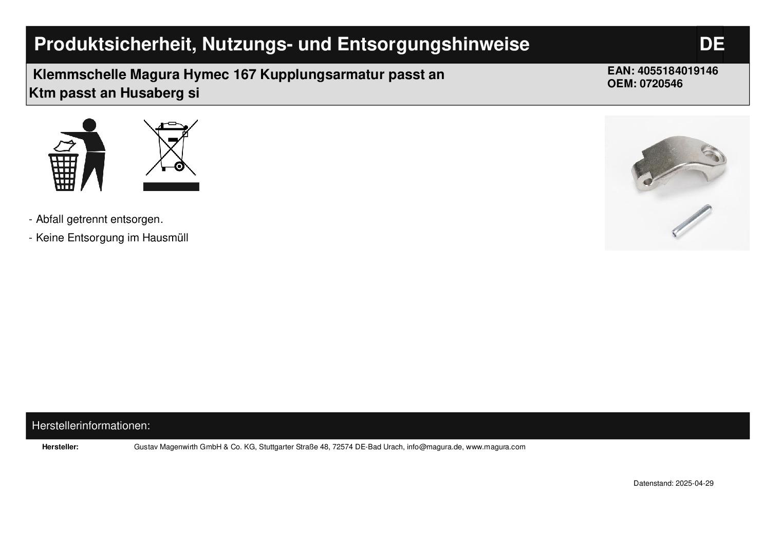 In dieser Auktion gibt es folgenden Artikel zu kaufen: Klemmschelle für Kupplungsarmatur (siehe Foto) Modell: passend für KTM Bj.: unbekannt passend für Husaberg Bj.: unbekannt Typ : Magura Hymec 167 Lieferumfang: 1 Stück Artikelzustand: neu Es handelt sich hierbei um kein Originalteil Bei Unklarheiten oder Fragen bitte erst E-Mail schreiben.
