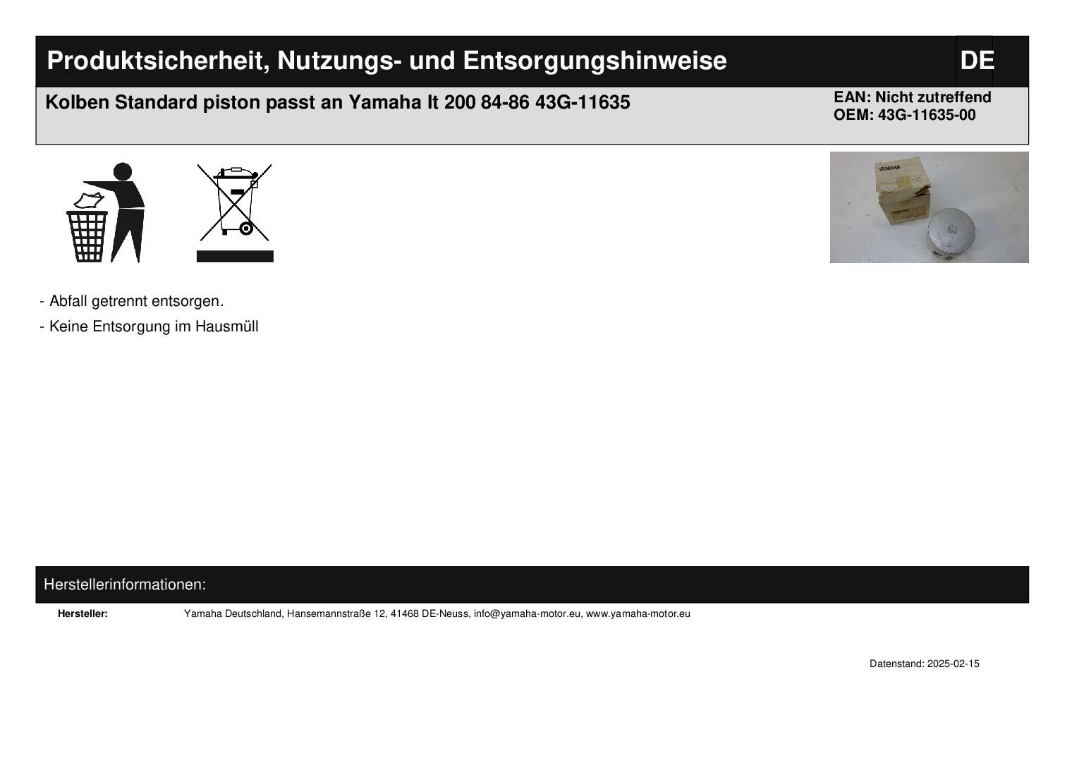 In dieser Auktion gibt es folgenden Artikel zu kaufen: Kolben (siehe Foto) Modell: passend für Yamaha IT 200 Bj.: 84 - 86 Kolbenmaß: Standard Lieferumfang: Kolben Artikelzustand: neu aus Geschäftsauflösung, mit leichten Lagerspuren; Zustand siehe Foto Bei Unklarheiten oder Fragen bitte erst E-Mail schreiben.