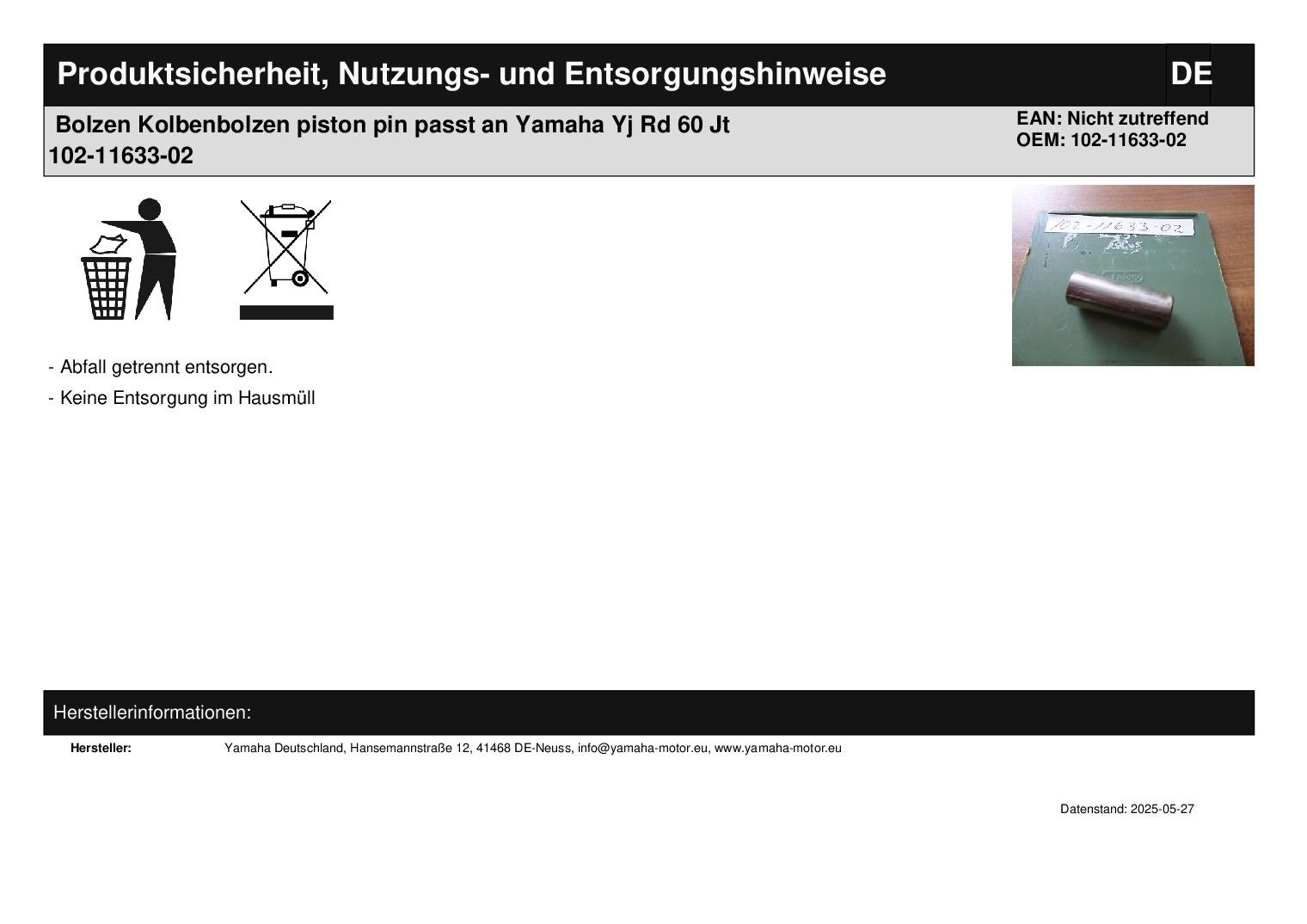 In dieser Auktion gibt es folgenden Artikel zu kaufen: originaler Kolbenbolzen (siehe Foto) Modell: passend für Yamaha YJ 1 Bj.: 1964 - 1965 YJ 2 Bj.: 1964 - 1965 JT 1 Bj.: 1971 JT 2 Bj: 1972 RD 60 Bj.: 1973 - 1975 Lieferumfang: 1 Stück Artikelzustand: neu aus Geschäftsauflösung, mit minimalen Lagerspuren; Zustand siehe Foto Bei Unklarheiten oder Fragen bitte erst E-Mail schreiben.
