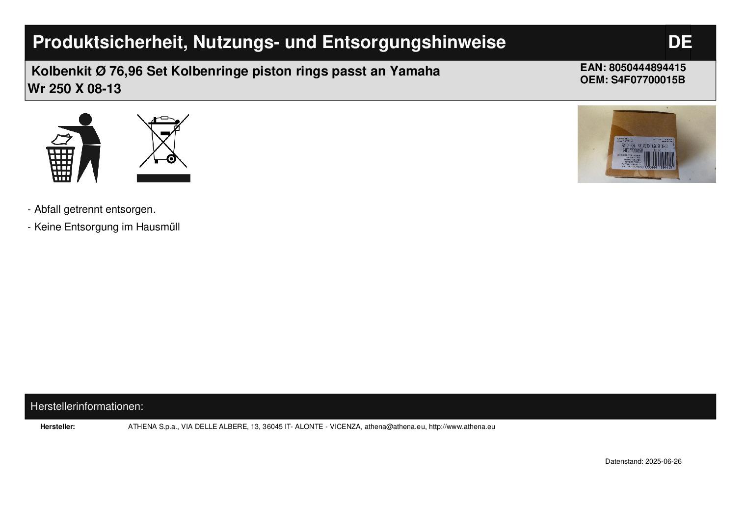 In dieser Auktion gibt es folgenden Artikel zu kaufen: Kolbenkit (ähnlich den Fotos 2 - 5) Modell: passend für Yamaha Wr 250 X Bj.: 2008 - 2013 (4-Takt) Kolbenmaß: Ø 76,96 mm Lieferumfang: ähnlich Foto Artikelzustand: neu aus Geschäftsauflösung, mit minimalen Lagerspuren; Zustand siehe Foto Bei Unklarheiten oder Fragen bitte erst E-Mail schreiben.