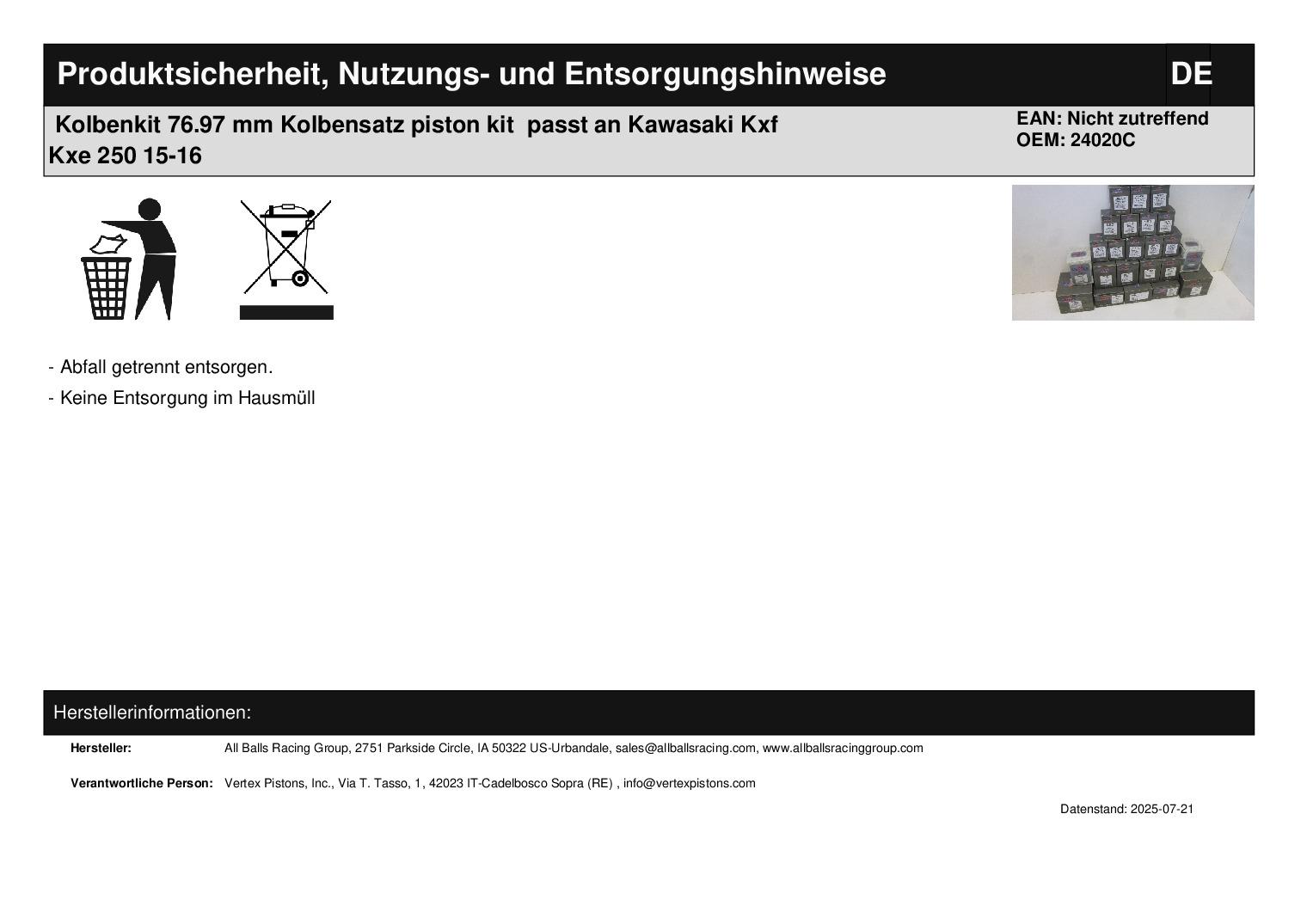 In dieser Auktion gibt es folgenden Artikel zu kaufen: Kolbenkit (ähnlich Foto) Modell: passend für Kawasaki KX 250 F Bj.: 15 - 16 KXE 250 F Bj.: 15 - 16 Kolbenmaß: 76,94 mm Lieferumfang: Kolben, Kolbenringe, Kolbenbolzen und Sicherungsringe Foto dient nur als Muster, es wird nur ein Kolbenkit geliefert! Artikelzustand: neu aus Geschäftsauflösung, mit minimalen Lagerspuren; Zustand ähnlich Foto Bei Unklarheiten oder Fragen bitte erst E-Mail schreiben.