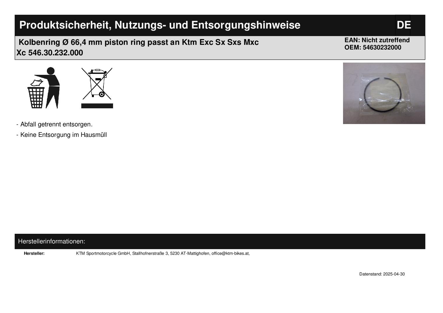 In dieser Auktion gibt es folgenden Artikel zu kaufen: Kolbenring (siehe Foto) Modell: passend für KTM SX 250 Bj.: 00 - 10 SX 380 Bj.: 00 EXC 250 Bj.: 00 - 10 EXC 300 Bj.: 00 - 04 MXC 300 Bj.: 00 - 04 MXC 380 Bj.: 00 - 01 Lieferumfang: siehe Foto Artikelzustand: neu aus Geschäftsauflösung, mit minimalen Lagerspuren; Zustand siehe Foto Bei Unklarheiten oder Fragen bitte erst E-Mail schreiben.