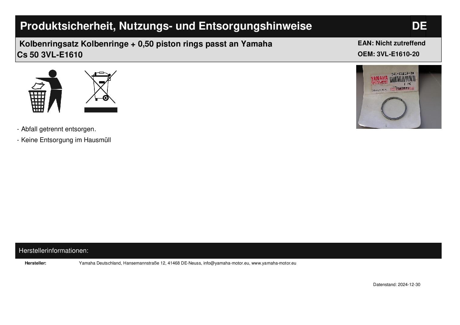 In dieser Auktion gibt es folgenden Artikel zu kaufen: Kolbenringsatz (siehe Foto) Modell: passend für Yamaha CS 50 Bj.: 09 CW 50 Bj.: 90 - 99 YA 50 R Bj.: 95 - 96 YQ 50 Bj.: 97 - 99 Maß: + 0,50 / 2. Übermaß Lieferumfang: siehe Foto Artikelzustand: neu aus Geschäftsauflösung, mit leichten Lagerspuren; Zustand siehe Foto Bei Unklarheiten oder Fragen bitte erst E-Mail schreiben.