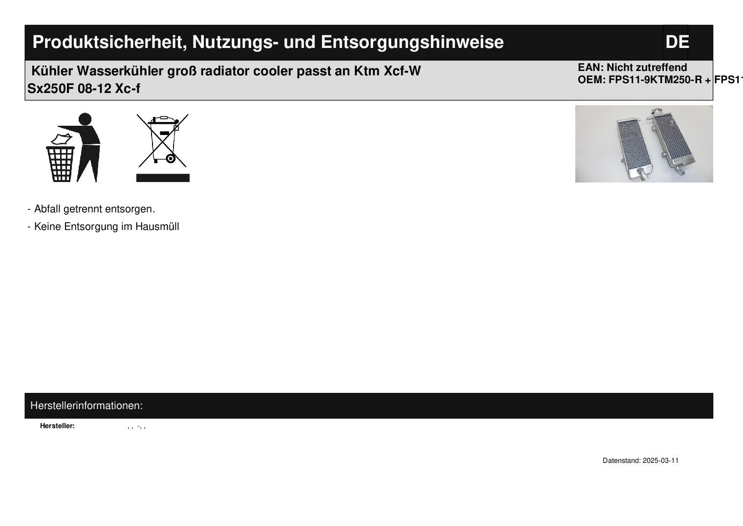 In dieser Auktion gibt es folgenden Artikel zu kaufen: Oversizekühler (siehe Foto) Modell: passend für Ktm SXF, XCF-W 250 Bj.: 2008 - 2012 XC-F 250 Bj.: 2008, 2009, 2012 Artikelbeschreibung: - optimale Passform, keine Modifikationen erforderlich - stabiler als Originalkühler, ca. 33% mehr Durchflussmenge durch größere Oberfläche