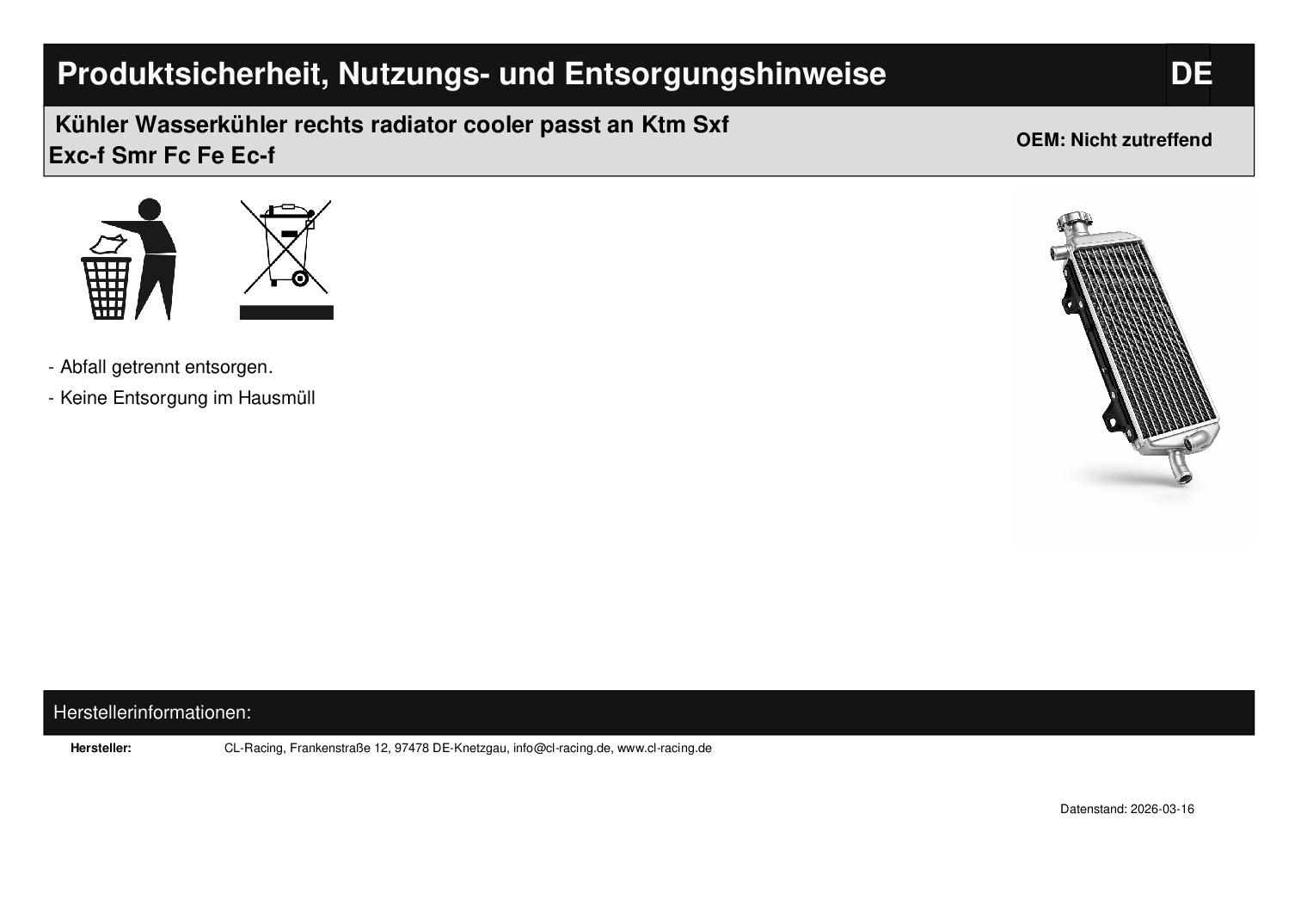 In dieser Auktion gibt es folgenden Artikel zu kaufen: Kühler rechts aus dem Zubehör (ähnlich Foto) Modell: passend für KTM EXC-F 250, 350, 450, 500 Bj.: 20 - 23 SMR 450 Bj.: 21 - 22 SXF 250, 350, 450 Bj.: 19 - 22 XC-F 250, 350, 450 Bj.: 19 - 22 XCF-W 350, 500 Bj.: 20 - 22 XCF-W 450 Bj.: 23 passend für Husqvarna FC 250, 350, 450 Bj.: 19 - 22 FE 250, 350, 450, 501 Bj.: 20 - 23 FE 350 S, 501 S Bj.: 20 - 23 FS 450 Bj.: 19 - 22 FX 350, 450 Bj.: 19 - 22 passend für GasGas EX-F 250, 350, 450 Bj.: 21 - 23 MC-F 250, 450 Bj.: 21 - 23 MC-F 350 Bj.: 22 - 23 Lieferumfang: 1 Stück Artikelzustand: neu Es handelt sich hierbei um kein Originalteil! Bei Unklarheiten oder Fragen bitte erst E-Mail schreiben.