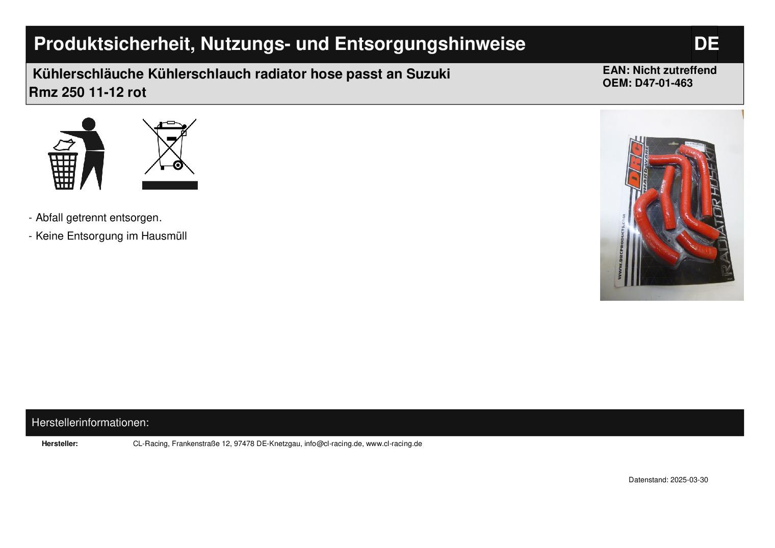 In dieser Auktion gibt es folgenden Artikel zu kaufen: Kühlerschläuche (siehe Foto) Modell: passend für Suzuki RMZ 250 Bj.: 11 - 12 Lieferumfang: siehe Foto Artikelzustand: neu aus Geschäftsauflösung, mit leichten Lagerspuren; Zustand siehe Foto Bei Unklarheiten oder Fragen bitte erst E-Mail schreiben.