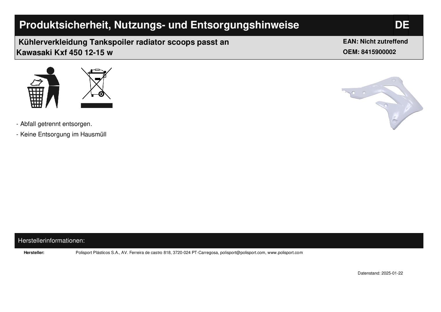 In dieser Auktion gibt es folgenden Artikel zu kaufen: Tankverkleidungen (siehe Foto) Fahrzeug: passend für Kawasaki Kxf 450 (4-Takt) Bj.: 2012 - 2015 Lieferumfang: links + rechts Artikelzustand: neu aus Geschäftsauflösung, mit minimalen Lagerspuren; Zustand siehe Foto Bei Unklarheiten oder Fragen bitte erst E-Mail schreiben.