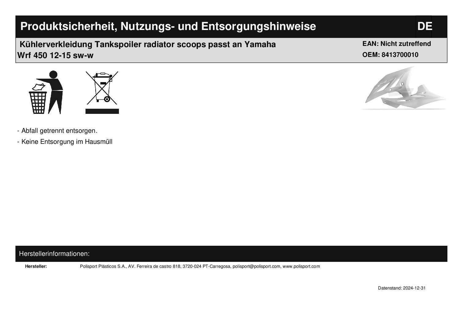 In dieser Auktion gibt es folgenden Artikel zu kaufen: Tankverkleidungen (siehe Foto) Fahrzeug: passend für Yamaha YZF 250 Bj.: 2010 - 2013 (4-Takt) WRF 450 Bj.: 2012 - 2015 (4-Takt) Lieferumfang: links + rechts Artikelzustand: neu aus Geschäftsauflösung, mit leichten Lagerspuren; Zustand siehe Foto