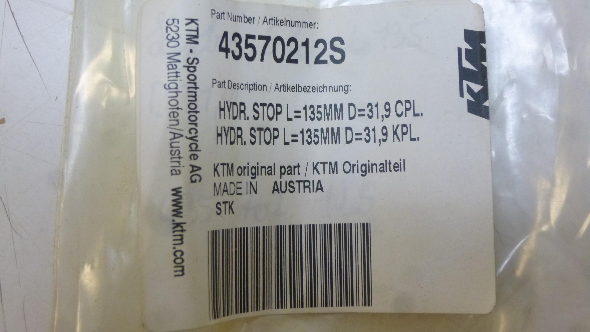 In dieser Auktion gibt es folgenden Artikel zu kaufen: Hydraulic-Stop (siehe Foto) Modell: passend für Ktm SX 85 Bj.: 03 - 07 SX 105 Bj.: 06 - 07 Abmaße: Durchmesser: 31,9 mm Länge: 135 mm Lieferumfang: siehe Foto Artikelzustand: neu aus Geschäftsauflösung, mit minimalen Lagerspuren; Zustand siehe Foto Bei Unklarheiten oder Fragen bitte erst E-Mail schreiben.