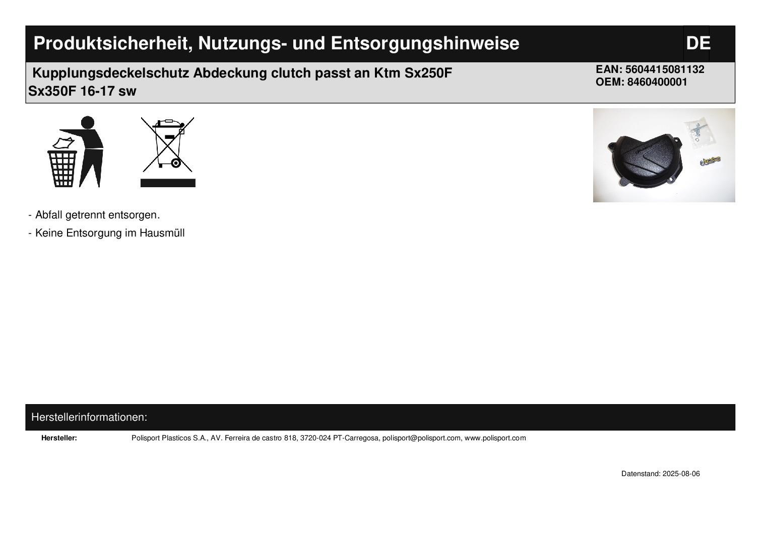 Polisport Abdeckung Kupplungsdeckel Ktm Sxf 250 350 4-Takt Bj. 16 - 17 schwarz X 40-7 - Lager -