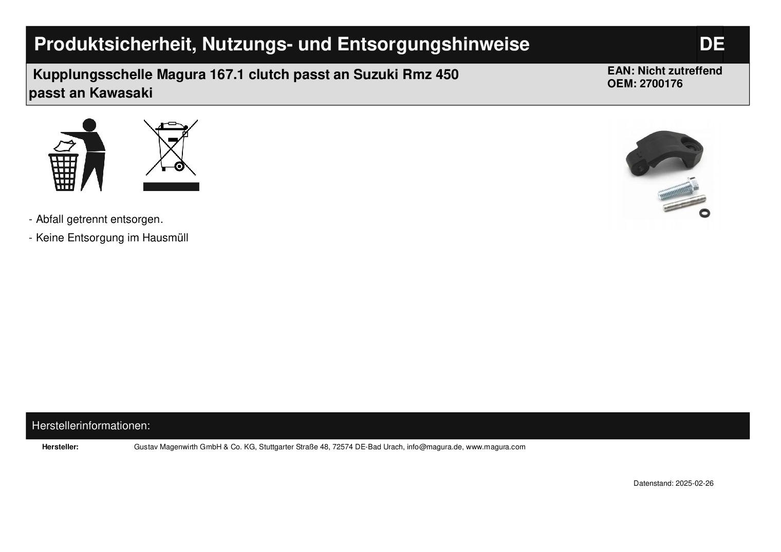 Titel: Kupplungsschelle Magura 167.1 clutch passt an Suzuki Rmz 450 passt an Kawasaki