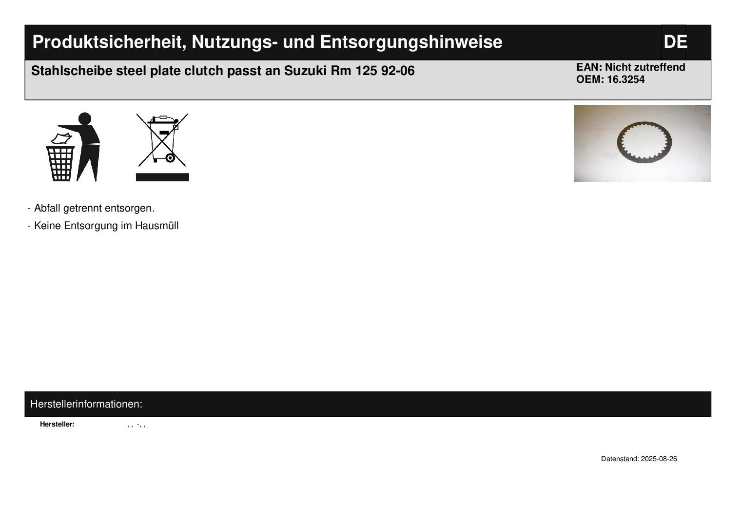 In dieser Auktion gibt es folgenden Artikel zu kaufen: Stahlscheibe (ähnlich Foto) Modell: passend für Suzuki RM 125 Bj.: 92 - 06 Lieferumfang: 1 Stück Artikelzustand: neu aus Geschäftsauflösung, mit leichten Lagerspuren wie z. B. Flugrost; Zustand ähnlich Foto Bei Unklarheiten oder Fragen bitte erst E-Mail schreiben.