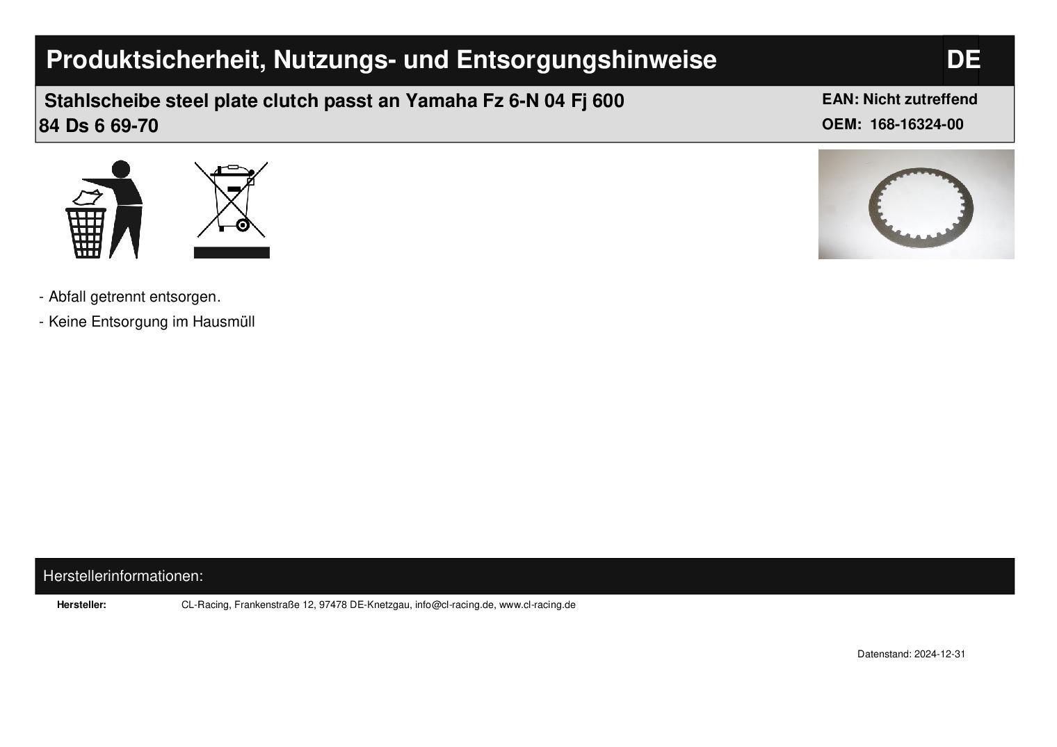 In dieser Auktion gibt es folgenden Artikel zu kaufen: Stahlscheibe (siehe Foto) Modell: passend für Yamaha DS 6 Bj.: 1969 - 1970 FJ 600 Bj.: 1984 FZ 6-N Bj.: 2004 Lieferumfang: 1 Stück Artikelzustand: neu aus Geschäftsauflösung, mit minimalen Lagerspuren; Zustand siehe Foto Bei Unklarheiten oder Fragen bitte erst E-Mail schreiben.