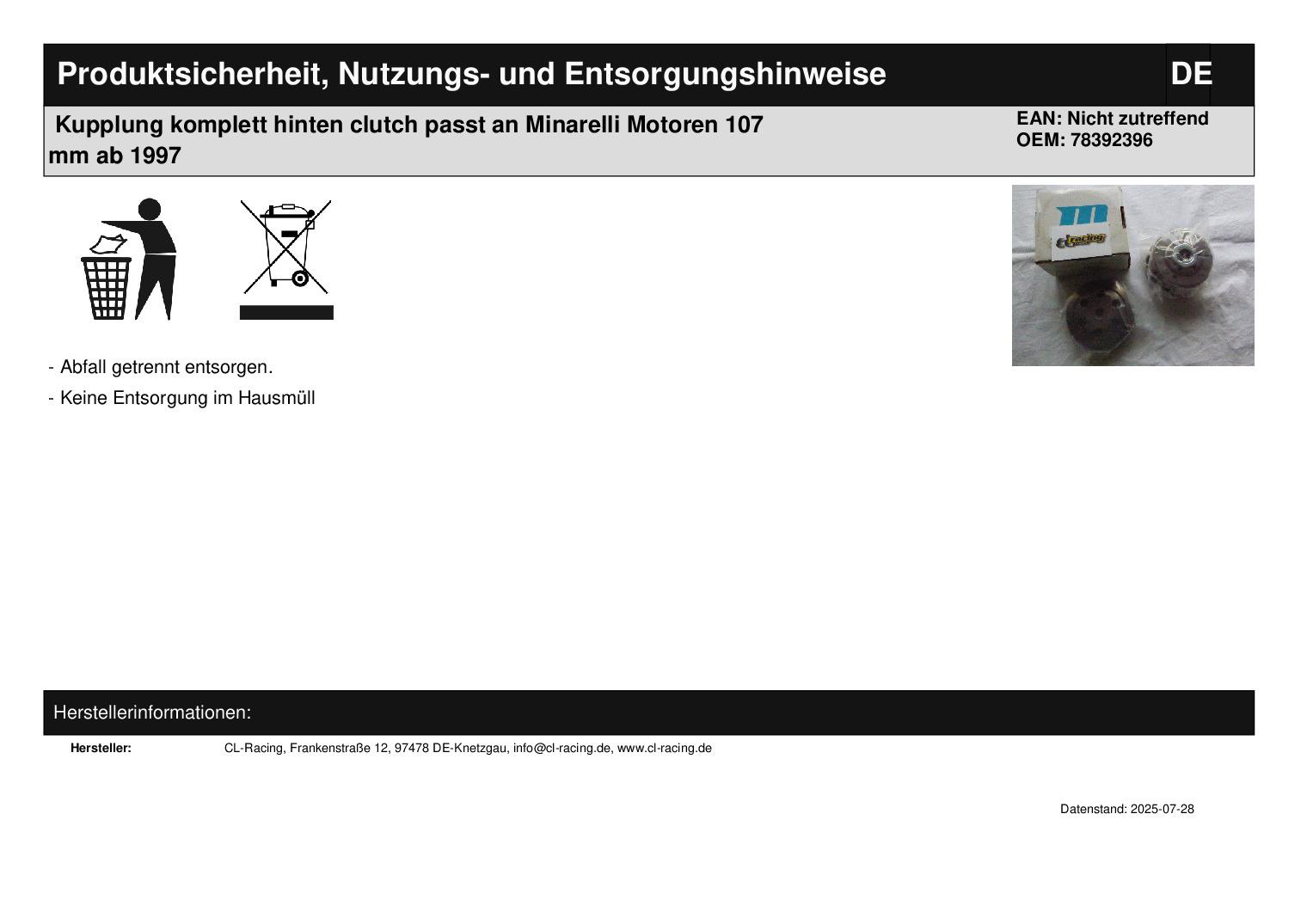 In dieser Auktion gibt es folgenden Artikel zu kaufen: Variomatik (siehe Foto) Hersteller: Motoforca Modell: passend für Minarelli Motoren 107 mm Bj.: unbekannt passend für Aprilia Amico Bj.: ab 1997 passend für SR 50 Bj.: 97 - 00 passend für Sonic Bj.: ab 1997 Lieferumfang: siehe Foto Artikelzustand: neu aus Geschäftsauflösung, mit minimalen Lagerspuren; Zustand siehe Foto Bei Unklarheiten oder Fragen bitte erst E-Mail schreiben.