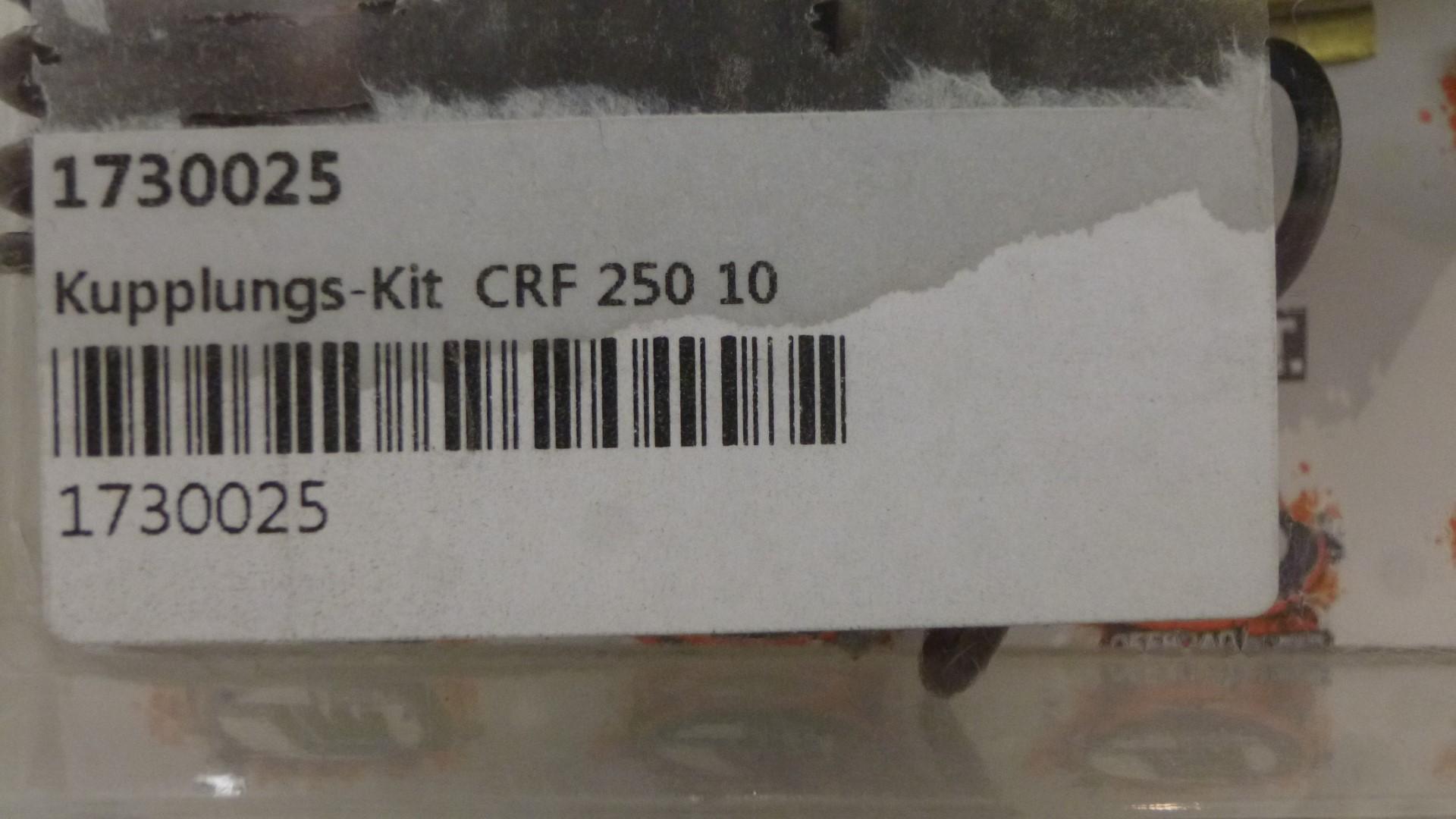 CRF 250 Bj.: 2010 Lieferumfang: 8 Kupplungsscheiben 7 Stahlscheiben 5 Federn Artikelzustand: neu aus Geschäftsauflösung, mit leichten Lagerspuren; Zustand siehe Foto Hierbei handelt es sich um kein Originalteil. Bei Unklarheiten oder Fragen bitte erst E-Mail schreiben.
