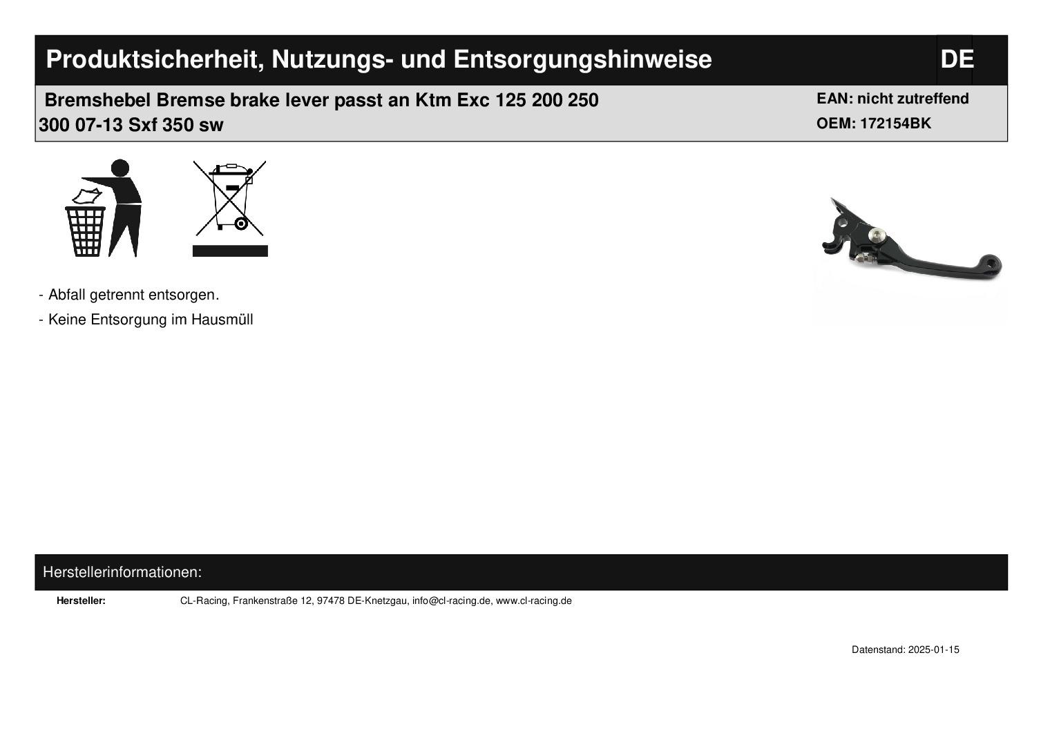 Titel: Bremshebel Bremse brake lever passt an Ktm Exc 125 200 250 300 07-13 Sxf 350 sw