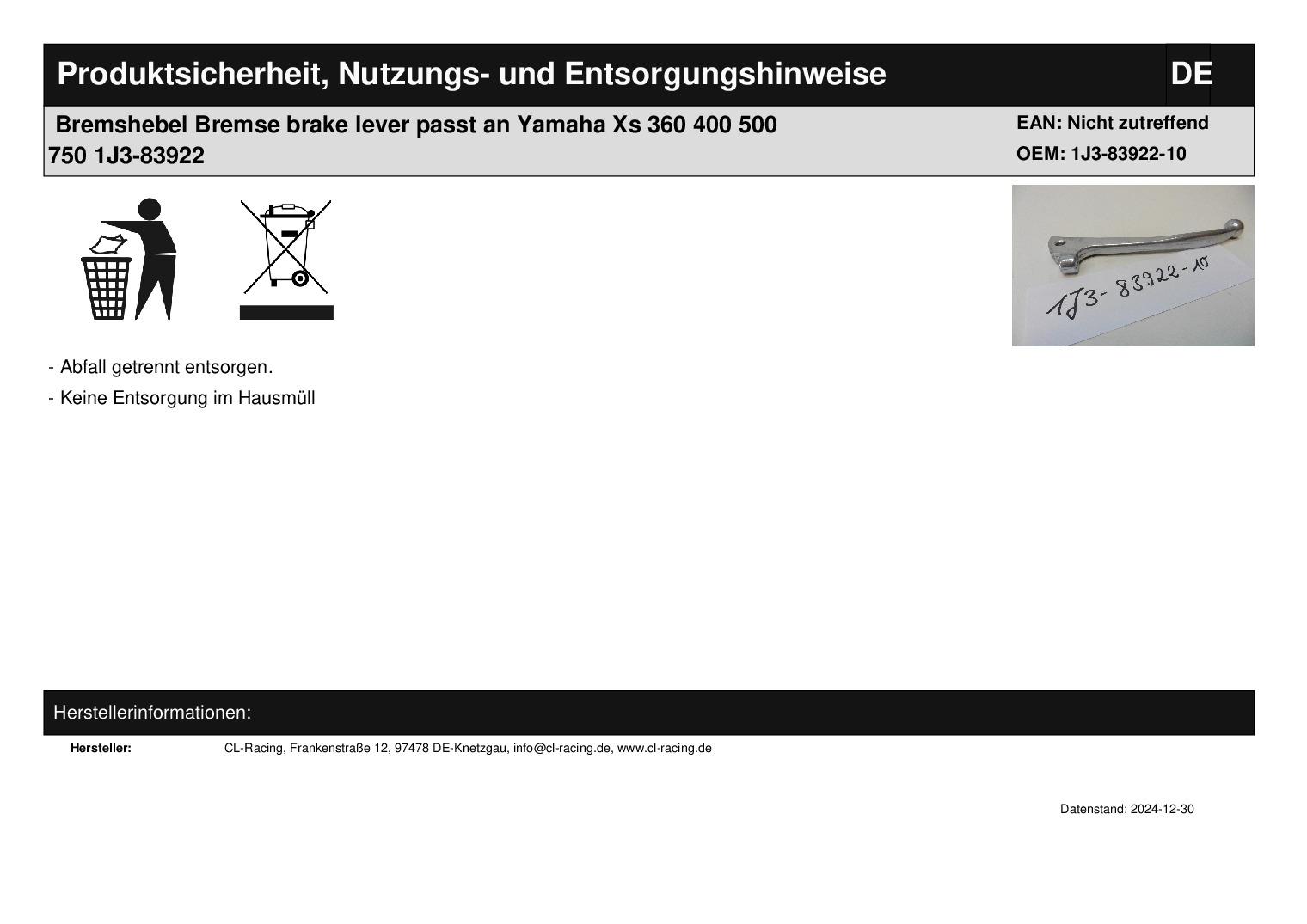 In dieser Auktion gibt es folgenden Artikel zu kaufen: Bremshebel (siehe Foto) Modell: passend für Yamaha XS 360 Bj.: 77 - 78 XS 400 Bj.: 77 XS 500 Bj.: 76 - 77 XS 750 Bj.: 77 Lieferumfang: 1 Stück Artikelzustand: neu aus Geschäftsauflösung, mit minimalen Lagerspuren; Zustand siehe Foto Bei Unklarheiten oder Fragen bitte erst E-Mail schreiben.