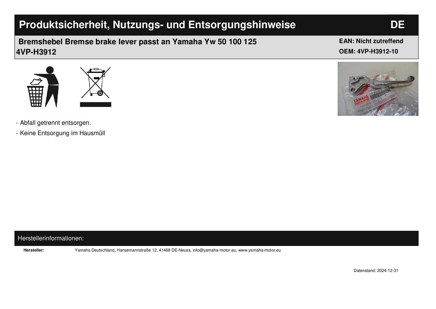 In dieser Auktion gibt es folgenden Artikel zu kaufen: Bremshebel (siehe Foto) Modell: passend für Yamaha YW 100 Bj.: 99 - 01 YW 125 Bj.: 09 - 15 YW 50 Bj.: 04 - 11 Lieferumfang: 1 Stück Artikelzustand: neu aus Geschäftsauflösung, mit minimalen Lagerspuren; Zustand siehe Foto Bei Unklarheiten oder Fragen bitte erst E-Mail schreiben.