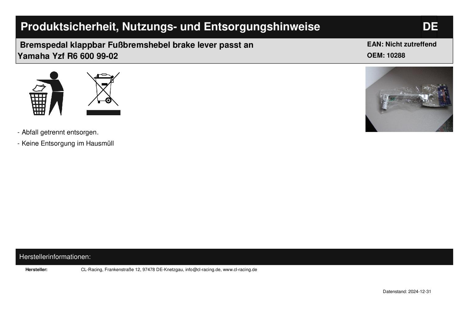 • Bremspedal klappbar Fußbremshebel brake lever passt an Yamaha Yzf R6 600 99-02