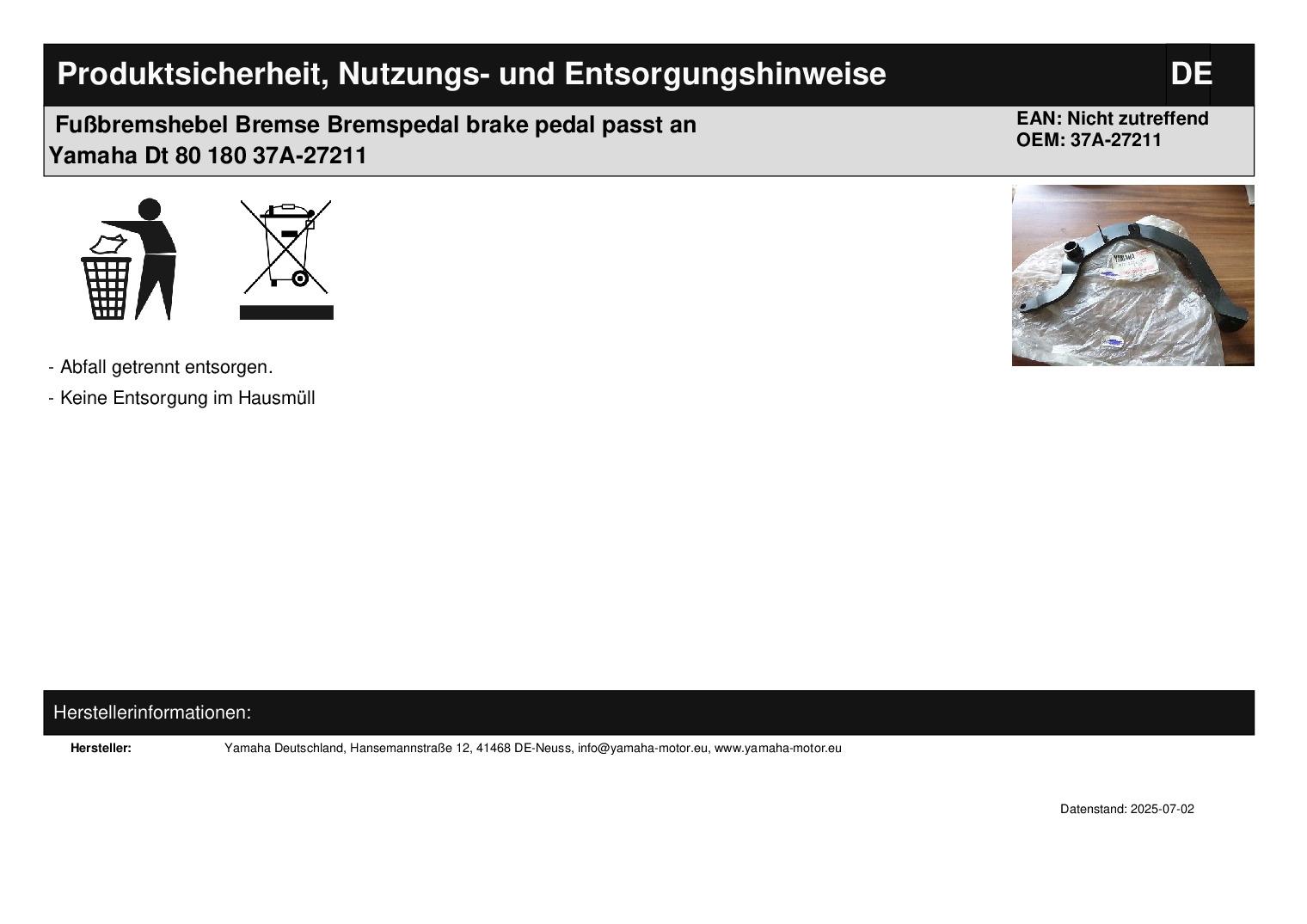 In dieser Auktion gibt es folgenden Artikel zu kaufen: originaler Fußbremshebel (siehe Foto) Modell: passend für Yamaha DT 180 Lc, DT 80 Lc1 Bj.: unbekannt Lieferumfang: 1 Stück Artikelzustand: neu aus Geschäftsauflösung, mit minimalen Lagerspuren; Zustand siehe Foto Bei Unklarheiten oder Fragen bitte erst E-Mail schreiben.