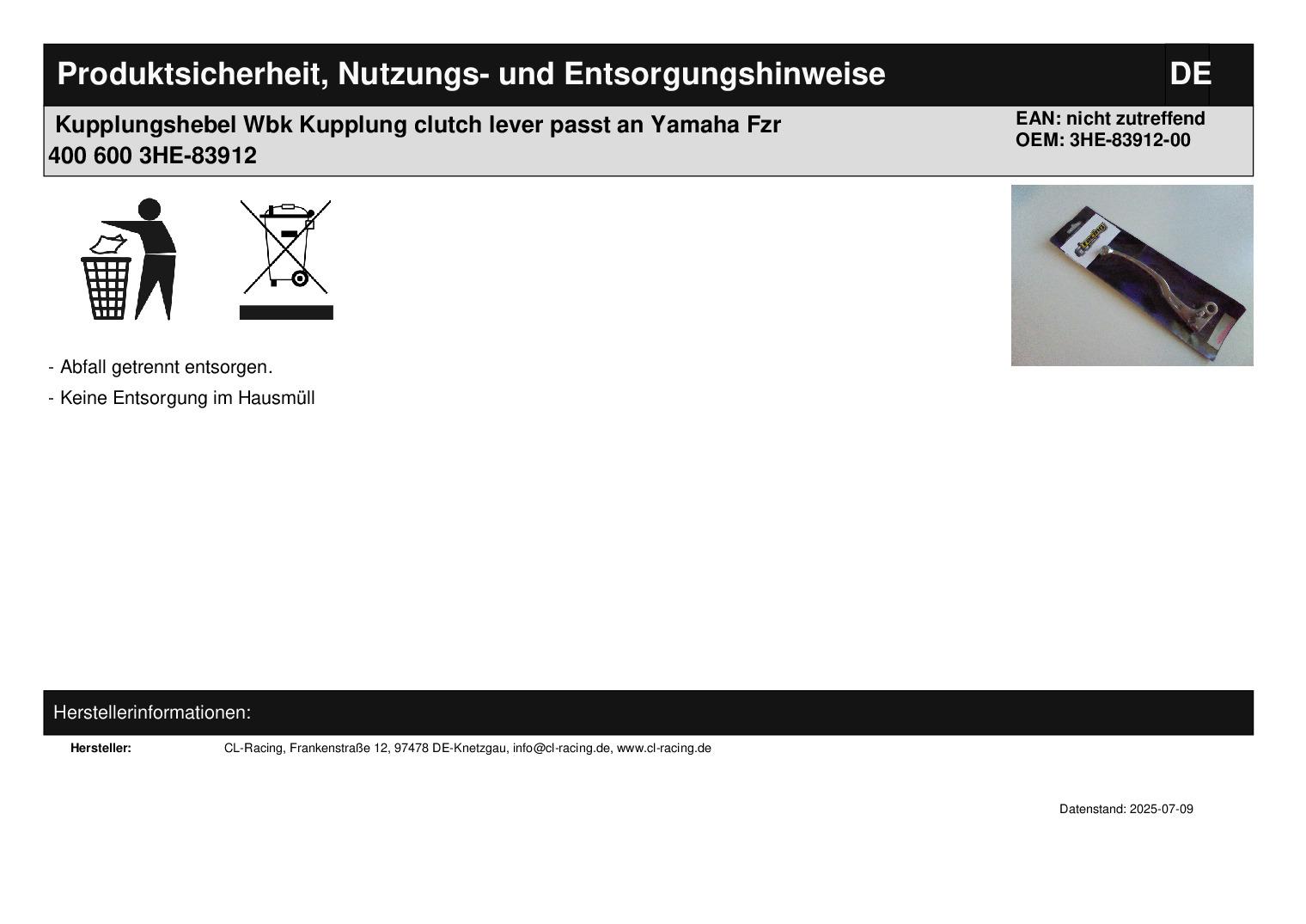 Kupplungshebel Wbk Kupplung clutch lever passt an Yamaha Fzr 400 600 3HE-83912