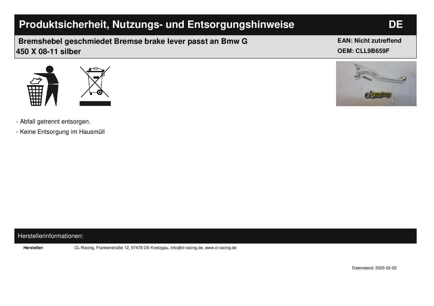 In dieser Auktion gibt es folgenden Artikel zu kaufen: geschmiedeter Bremshebel mit Sollbruchstelle (siehe Foto) Modell: passend für Ktm Exc 125 Bj.: 2005 - 2013 Exc 200 Bj.: 2005 - 2013 Exc 250 Bj.: 2005 - 2013 Exc 300 Bj.: 2006 - 2013 Exc-f 250 Bj.: 2005 - 2013 Exc-f 350 Bj.: 2012 - 2013 Exc 400 Bj.: 2005 - 2011 Exc 450 Bj.: 2005 - 2013 Exc 500 Bj.: 2012 - 2013 Exc 525 Bj.: 2005 - 2007 Exc 530 Bj.: 2008 - 2011 Sx 125 Bj.: 2005 - 2013 Sx 150 Bj.: 2009 - 2013 Sx 250 Bj.: 2005 - 2013 Sx-f 250 Bj.: 2006 - 2012 Sx-f 350 Bj.: 2011 - 2013 Sx 450 Bj.: 2005 - 2013 Sx-f 505 Bj.: 2007 - 2008 passend für Husaberg Fe 250 Bj.: 2013 - 2014 Fe 350 Bj.: 2013 - 2014 Fe 390 Bj.: 2010 - 2012 Fe 450 Bj.: 2006 - 2014 Fe 550 Bj.: 2006 - 2008 Fe 570 Bj.: 2009 - 2012 Fe 650 Bj.: 2006 - 2008 Fs 650 Bj.: 2008 Fx 450 Bj.: 2010 - 2011 Te 125 Bj.: 2011 - 2014 Te 250 Bj.: 2011 - 2014 Te 300 Bj.: 2011 - 2014 passend für BMW G 450 X Bj.: 2008 - 2011 Lieferumfang: Hebel inkl. Feder Artikelzustand: neu Es handelt sich hierbei um kein Originalteil! Bei Unklarheiten oder Fragen bitte erst E-Mail schreiben.