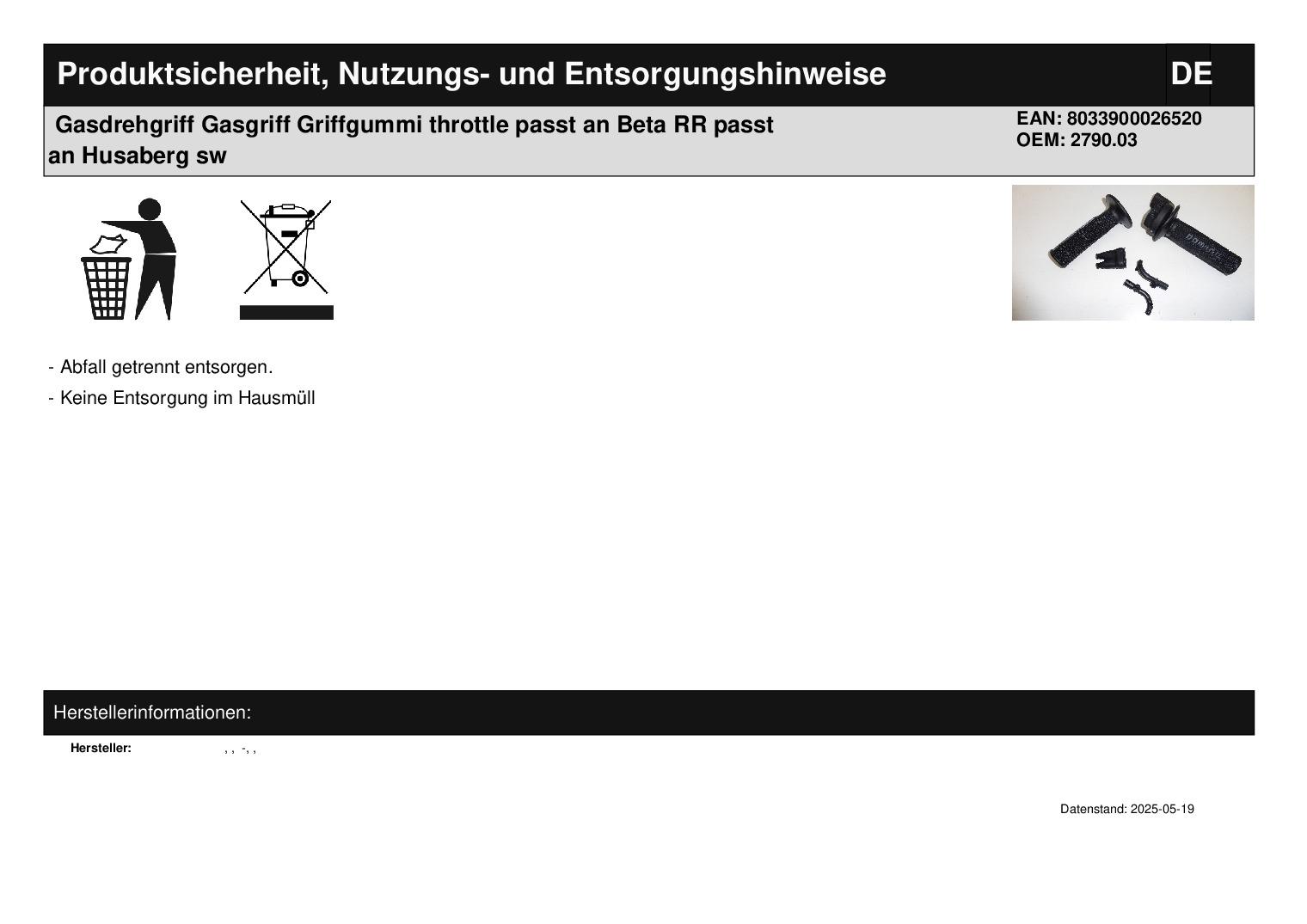 • Gasdrehgriff Gasgriff Griffgummi throttle passt an Beta RR passt an Husaberg sw