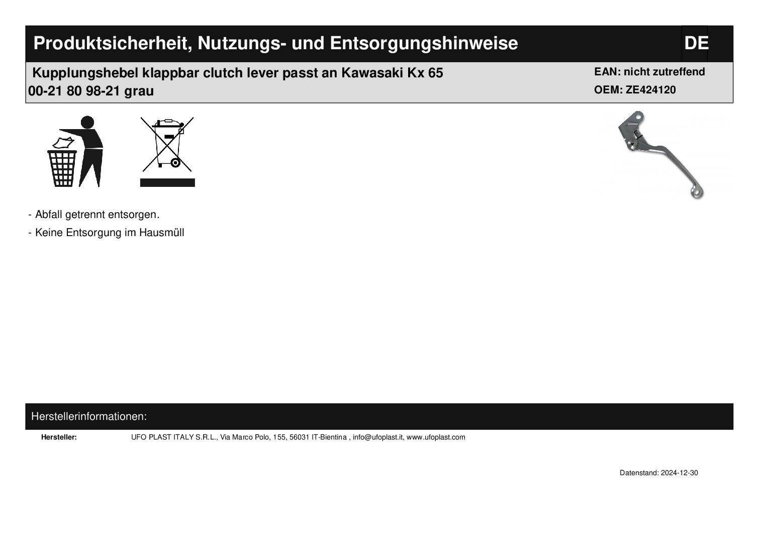 In dieser Auktion gibt es folgenden Artikel zu kaufen: Kupplungshebel (siehe Foto) Modell: passend für Suzuki Rmz 250 Bj.: 2004 + 2007 - 2021 (4-Takt) Rmz 450 Bj.: 2005 - 2021 (4-Takt) passend für Kawasaki Kx 65 Bj.: 2000 - 2021 (2-Takt) Kx 80 Bj.: 1998 - 2021 (2-Takt) Kx 85 Bj.: 1998 - 2021 (2-Takt) Kx 125 Bj.: 1990 - 2005 (2-Takt) Kx 250 Bj.: 1990 - 2004 (2-Takt) Kx-f 250 Bj.: 2004 (4-Takt) Artikelbeschreibung: 4-Finger-Kupplungshebel, klappbar Aluminium gefräst Lieferumfang: siehe Foto Artikelzustand: neu Bei Unklarheiten oder Fragen bitte erst E-Mail schreiben.
