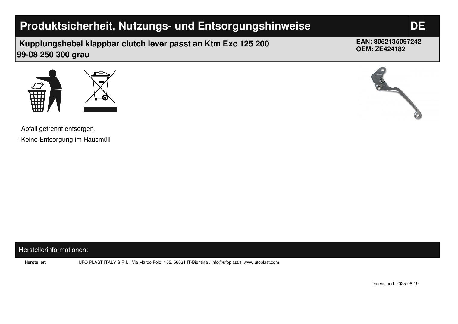 In dieser Auktion gibt es folgenden Artikel zu kaufen: Kupplungshebel (siehe Foto) Modell: passend für Ktm mit Magura-Kupplung Sx 65 Bj.: 2003 - 2021 (2-Takt) Sx 85 Bj.: 2003 - 2021 (2-Takt) Sx 105 Bj.: 2003 - 2021 (2-Takt) Sx 125 Bj.: 1999 - 2008 (2-Takt) Sx 144 Bj.: 1999 - 2008 (2-Takt) Sx 150 Bj.: 1999 - 2008 (2-Takt) Sx 200 Bj.: 1999 - 2008 (2-Takt) Sx 250 Bj.: 1999 - 2005 (2-Takt) Sx-f 400 Bj.: 2000 - 2007 (4-Takt) Sx-f 450 Bj.: 2000 - 2007 (4-Takt) Sx-f 525 Bj.: 2000 - 2007 (4-Takt) Exc 125 Bj.: 1999 - 2008 (2-Takt) Exc 200 Bj.: 1999 - 2008 (2-Takt) Exc 250 Bj.: 2000 - 2005 (2-Takt) Exc 300 Bj.: 2000 - 2005 (2-Takt) Exc-f 250 Bj.: 2000 - 2007 (4-Takt) Exc-f 400 Bj.: 2000 - 2007 (4-Takt) Exc-f 450 Bj.: 2000 - 2007 (4-Takt) Exc-f 525 Bj.: 2000 - 2007 (4-Takt) passend für Husqvarna 4 Takt-Modelle Bj.: 2004 - 2010 (4-Takt) Artikelbeschreibung: 4-Finger-Kupplungshebel, klappbar Aluminium, gefräst Lieferumfang: siehe Foto Artikelzustand: neu Es handelt sich hierbei um kein Originalteil Bei Unklarheiten oder Fragen bitte erst E-Mail schreiben.