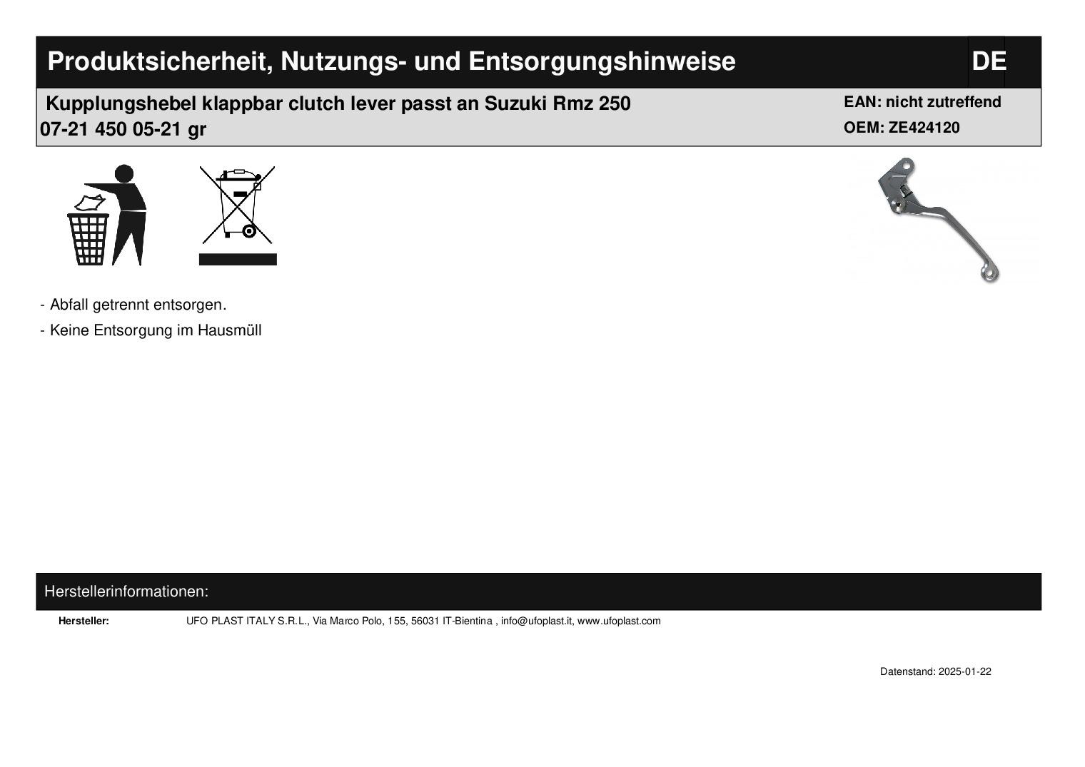 In dieser Auktion gibt es folgenden Artikel zu kaufen: Kupplungshebel (siehe Foto) Modell: passend für Suzuki Rmz 250 Bj.: 2004 + 2007 - 2021 (4-Takt) Rmz 450 Bj.: 2005 - 2021 (4-Takt) passend für Kawasaki Kx 65 Bj.: 2000 - 2021 (2-Takt) Kx 80 Bj.: 1998 - 2021 (2-Takt) Kx 85 Bj.: 1998 - 2021 (2-Takt) Kx 125 Bj.: 1990 - 2005 (2-Takt) Kx 250 Bj.: 1990 - 2004 (2-Takt) Kx-f 250 Bj.: 2004 (4-Takt) Artikelbeschreibung: 4-Finger-Kupplungshebel, klappbar Aluminium gefräst Lieferumfang: siehe Foto Artikelzustand: neu