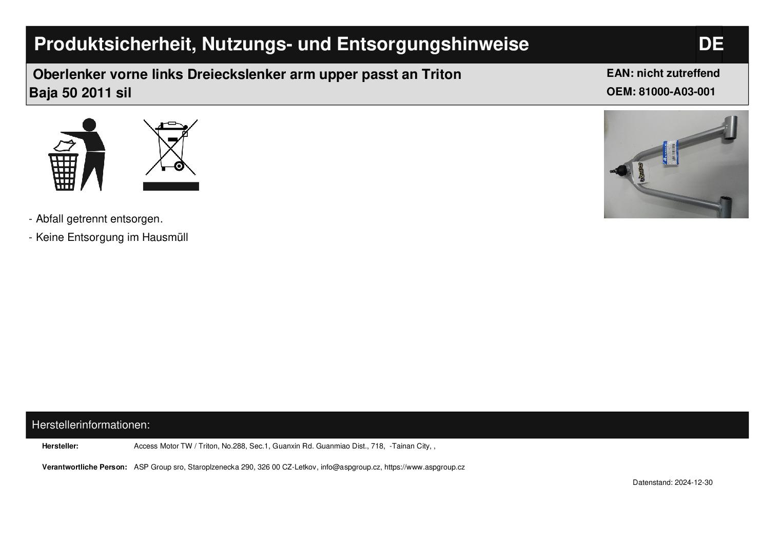 In dieser Auktion gibt es folgenden Artikel zu kaufen: Oberlenker vorne links (siehe Foto) Modell: passend für Triton
