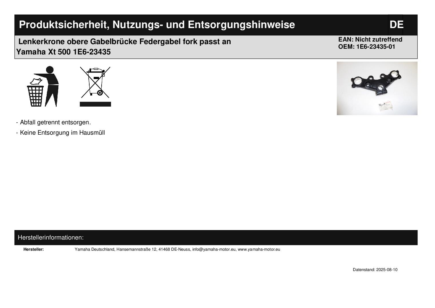 In dieser Auktion gibt es folgenden Artikel zu kaufen: Lenkerkrone (siehe Foto) Modell: passend für Yamaha XT 500 C, XT 500 D Bj.: 1976 - 1977 Lieferumfang: siehe Foto Artikelzustand: neu aus Geschäftsauflösung, mit minimalen Lagerspuren; Zustand siehe Foto Bei Unklarheiten oder Fragen bitte erst E-Mail schreiben.