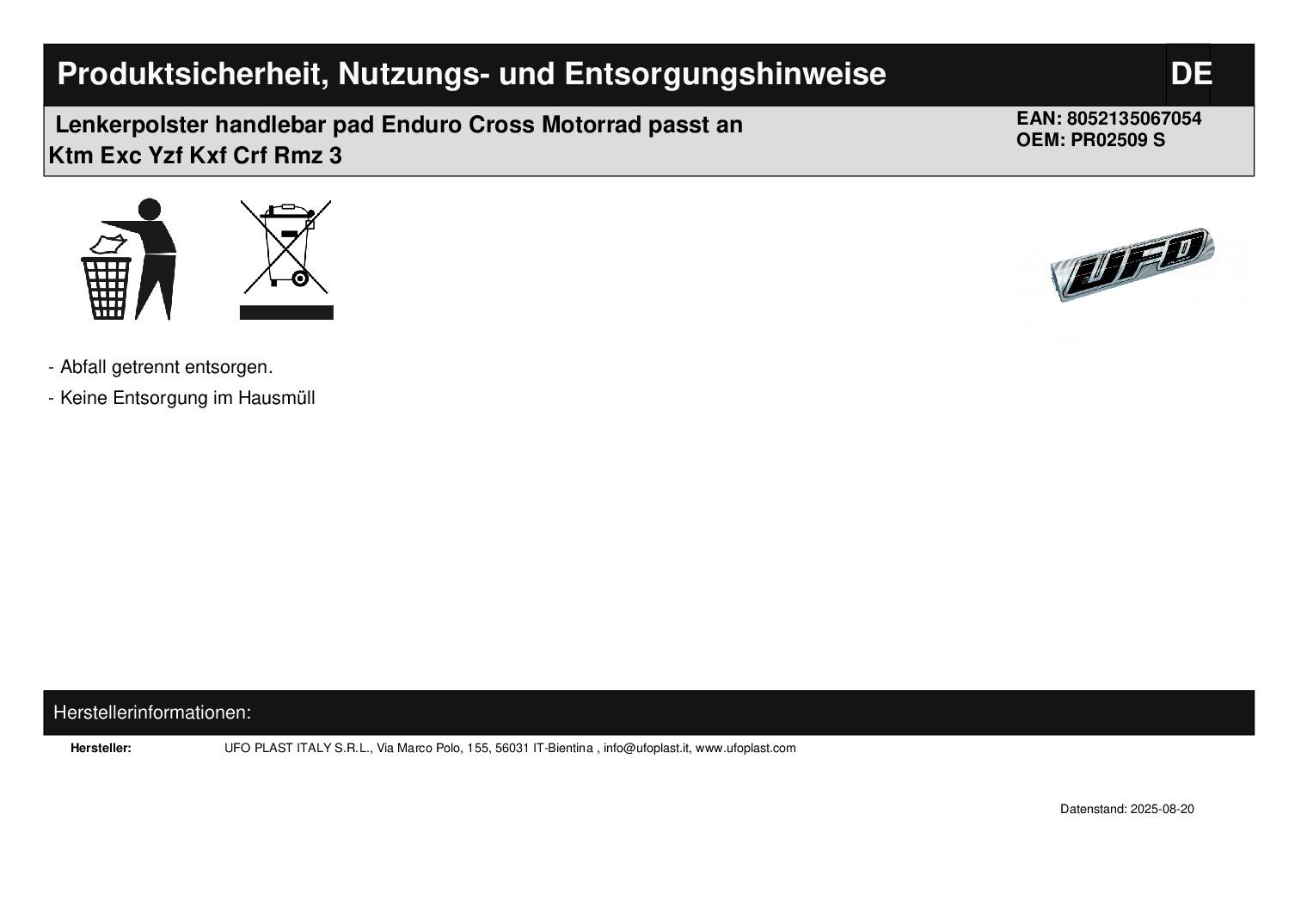 Titel: Lenkerpolster handlebar pad Enduro Cross Motorrad passt an Ktm Exc Yzf Kxf Crf Rmz 3