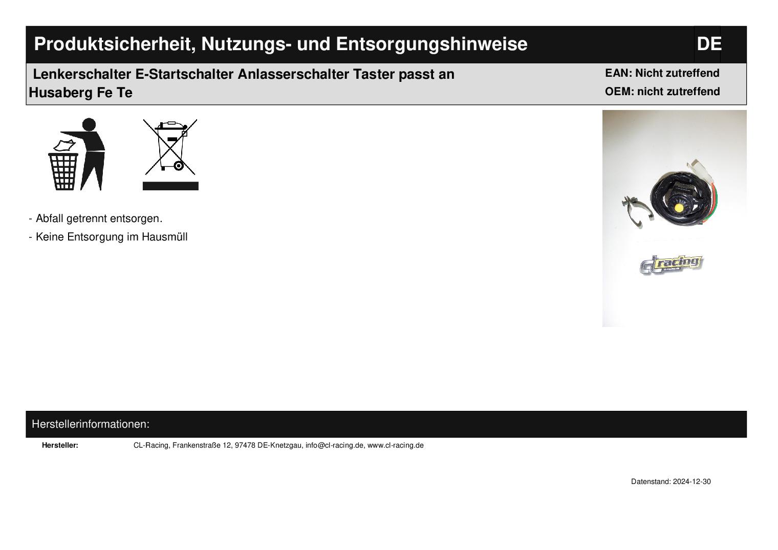 Titel: Lenkerschalter E-Startschalter Anlasser Taster switch passt an Husaberg Fe Te