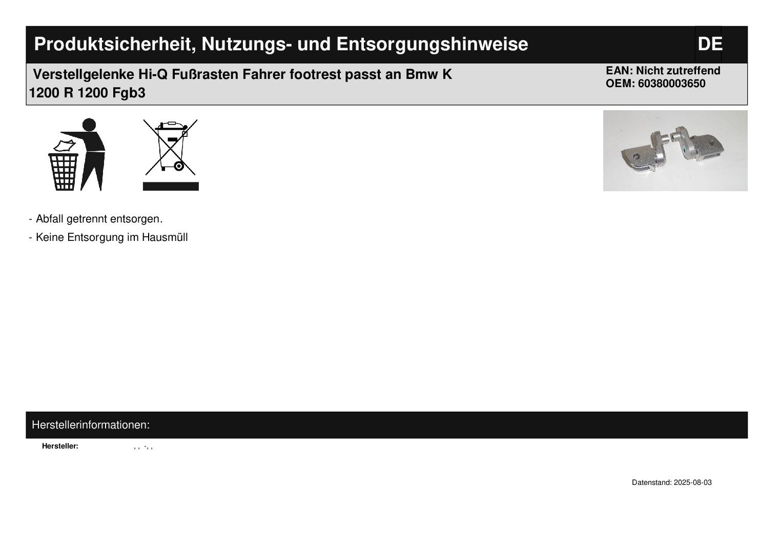 In dieser Auktion gibt es folgenden Artikel zu kaufen: Verstellgelenke (siehe Foto) Modell: passend für Bmw K 1200 / R 1200 Bj.: unbekannt Lieferumfang: siehe Foto Artikelzustand: neu aus Geschäftsauflösung, mit minimalen Lagerspuren; Zustand siehe Foto Bei Unklarheiten oder Fragen bitte erst E-Mail schreiben.
