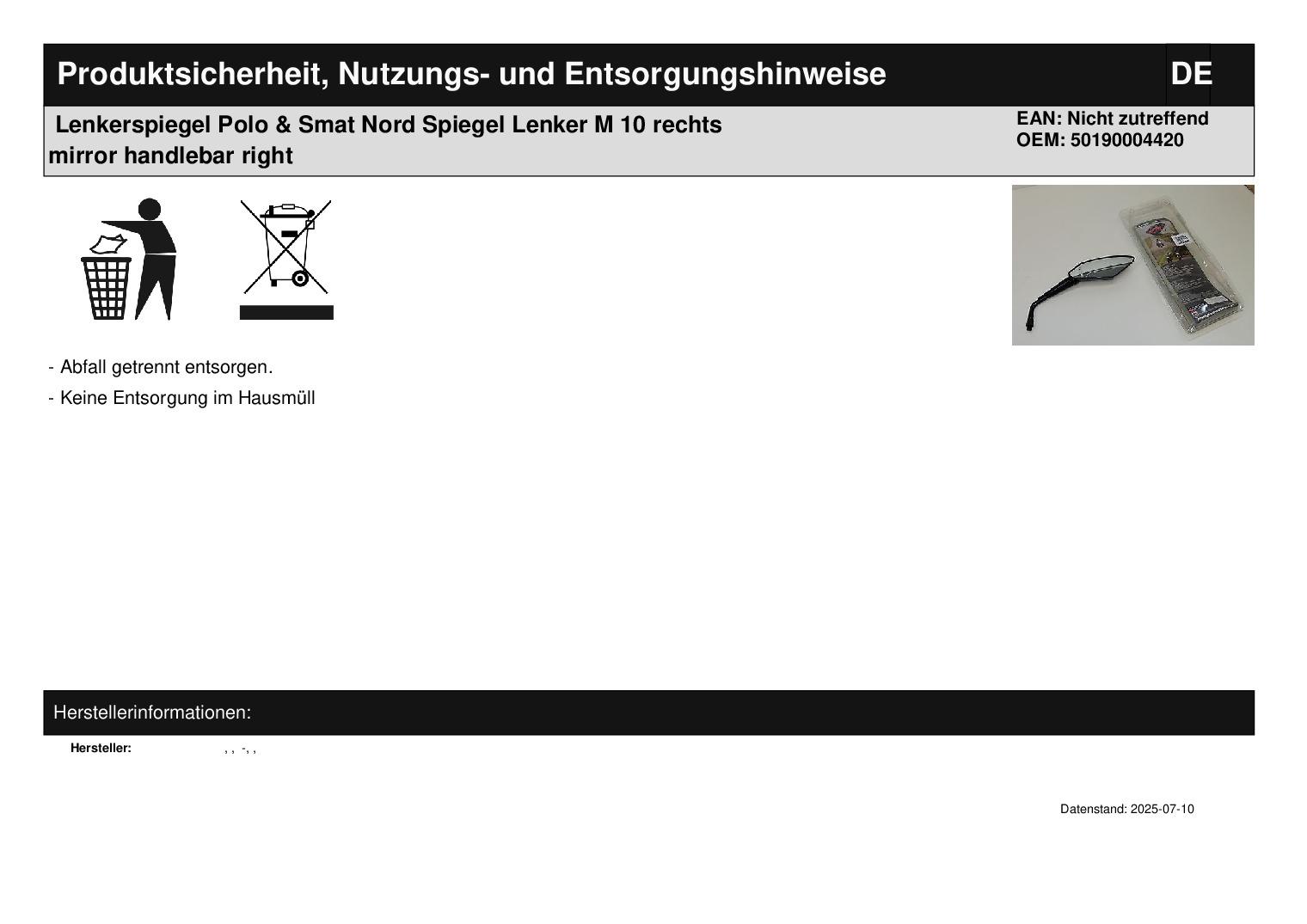 In dieser Auktion gibt es folgenden Artikel zu kaufen: Lenkerspiegel rechts, M10 (siehe Foto) Typ: Extreme Racing schwarz Lieferumfang: siehe Foto Artikelzustand: neu aus Geschäftsauflösung, mit Kratzer;