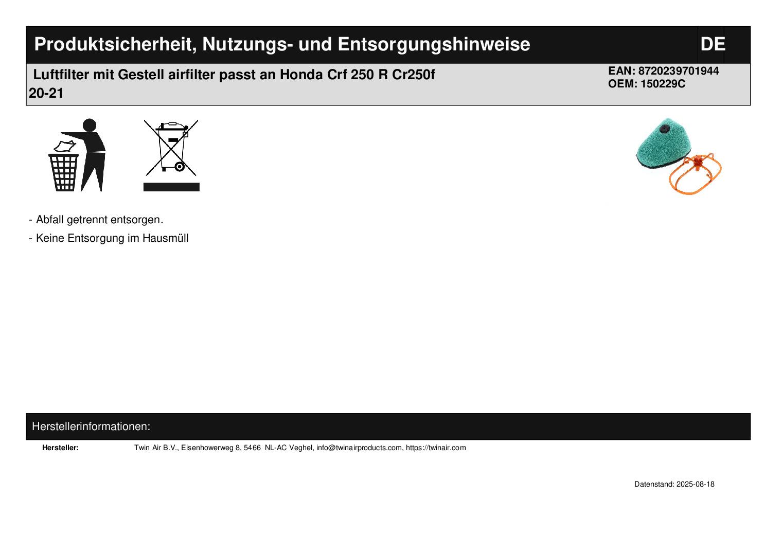 In dieser Auktion gibt es folgenden Artikel zu kaufen: Luftfilter mit Gestell (ähnlich Foto) Modell: passend für Honda CRF 250 R Bj.: 2020 - 2021 Lieferumfang: siehe Foto Artikelzustand: neu Hierbei handelt es sich um kein Originalteil Bei Unklarheiten oder Fragen bitte erst E-Mail schreiben.