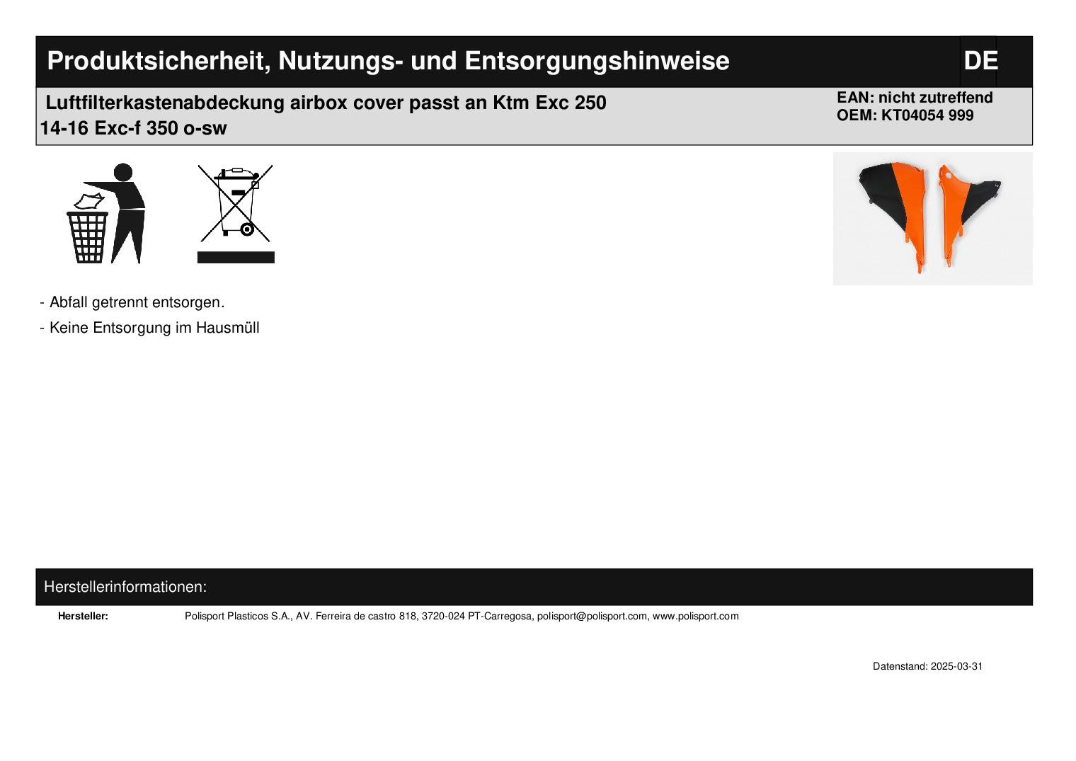 In dieser Auktion gibt es folgenden Artikel zu kaufen: Luftfilterkastenabdeckung (siehe Foto) Fahrzeug: passend für Ktm EXC 125 Bj.: 14 - 16 EXC 200 Bj.: 14 - 16 EXC 250 Bj.: 14 - 16 EXC 300 Bj.: 14 - 16 EXC 450 Bj.: 14 - 16 EXC 500 Bj.: 14 - 16 EXC-F 250 Bj.: 14 - 16 EXC-F 350 Bj.: 14 - 16 Lieferumfang: siehe Foto Artikelzustand: neu aus Geschäftsauflösung, mit minimalen Lagerspuren; Zustand siehe Foto Es handelt sich hierbei um kein Originalteil! Bei Unklarheiten oder Fragen bitte erst E-Mail schreiben.