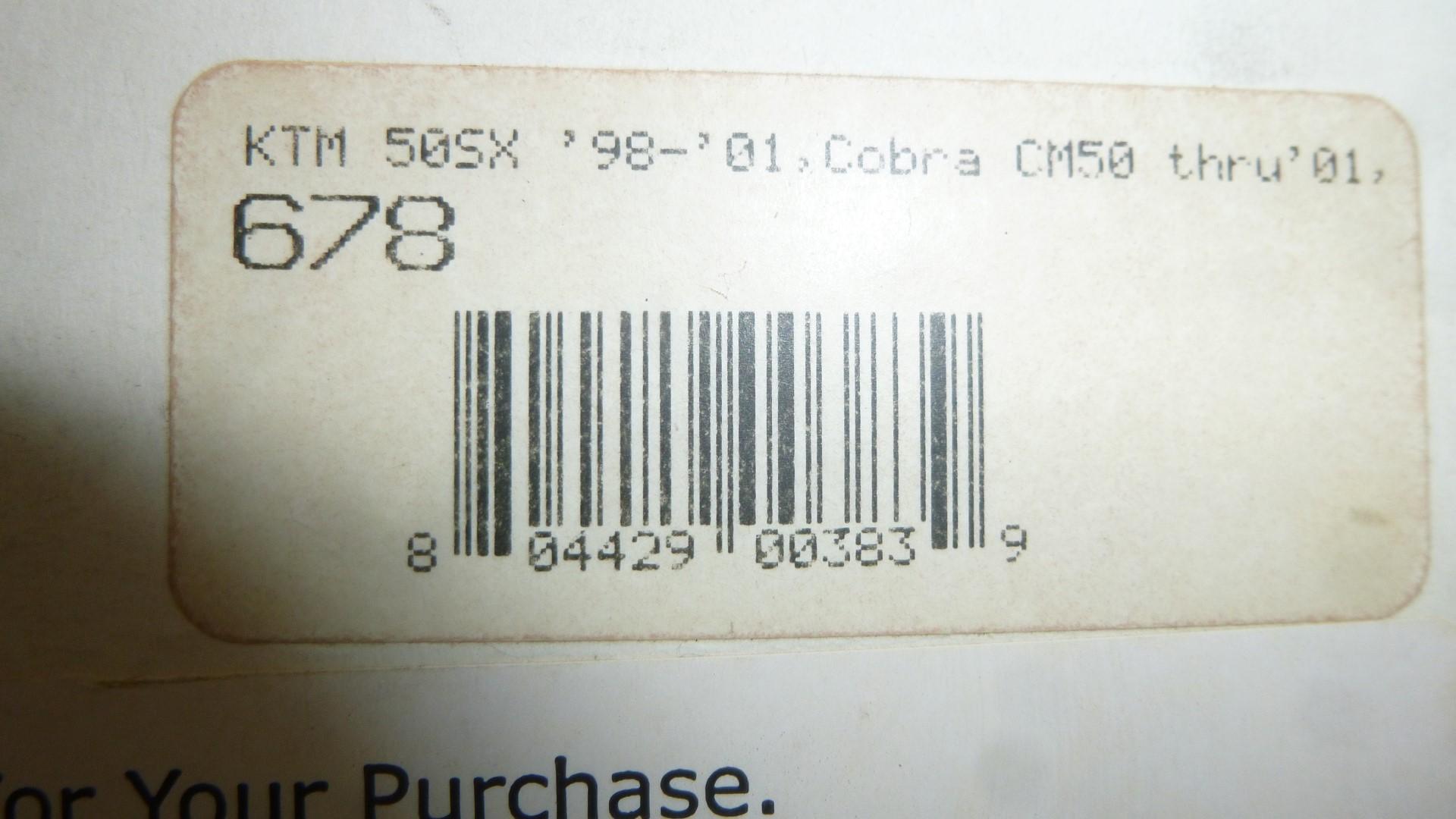 In dieser Auktion gibt es folgenden Artikel zu kaufen: Modell: passend für Ktm SX 50 Bj.: 98 - 01 passend für Cobra CM 50 Thru Bj.: 01 Lieferumfang: siehe Foto Artikelzustand: neu Es handelt sich hierbei um kein Originalteil Bei Unklarheiten oder Fragen bitte erst E-Mail schreiben.