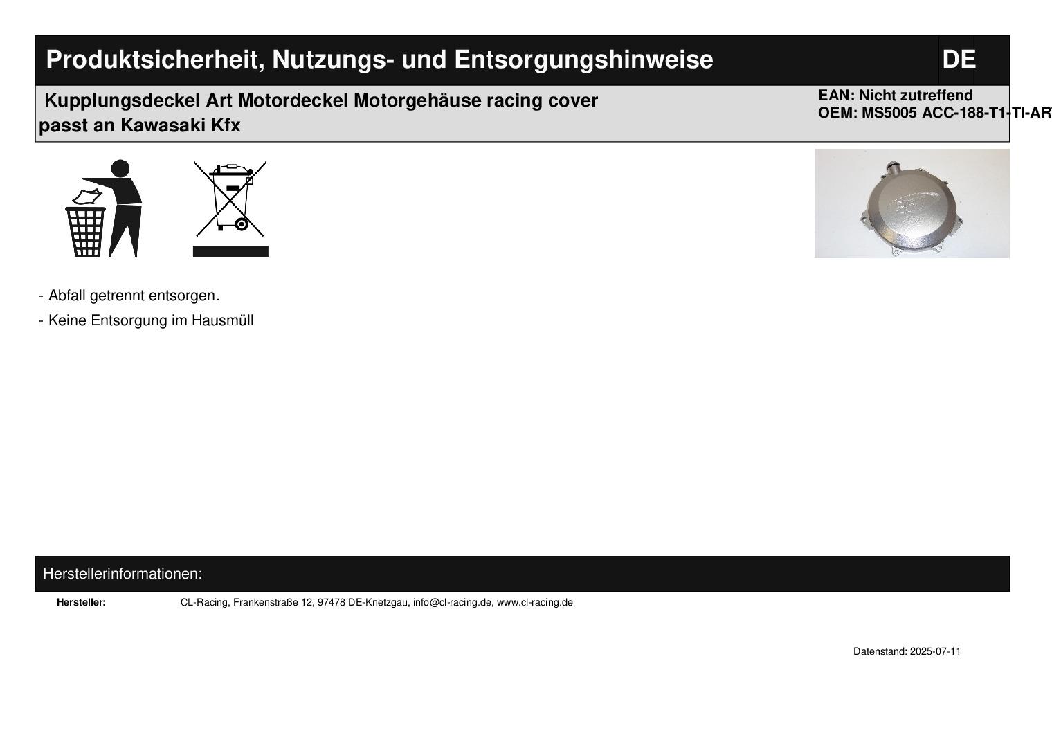Titel: Kupplungsdeckel Art Motordeckel Motorgehäuse racing cover passt an Kawasaki Kfx