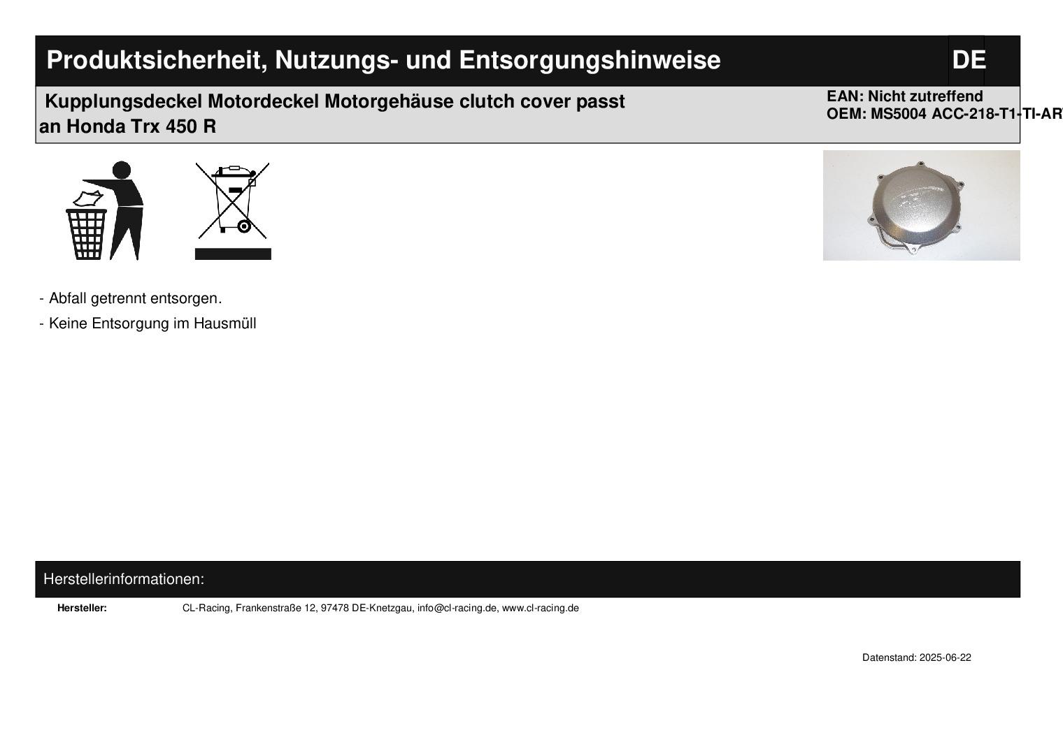 In dieser Auktion gibt es folgenden Artikel zu kaufen: Kupplungsdeckel (siehe Foto) Hersteller: ART Modell: passend für Honda TRX 450 R Bj.: unbekannt Lieferumfang: siehe Foto Artikelzustand: neu aus Geschäftsauflösung, mit minimalen Lagerspuren; Zustand siehe Foto Bei Unklarheiten oder Fragen bitte erst E-Mail schreiben.