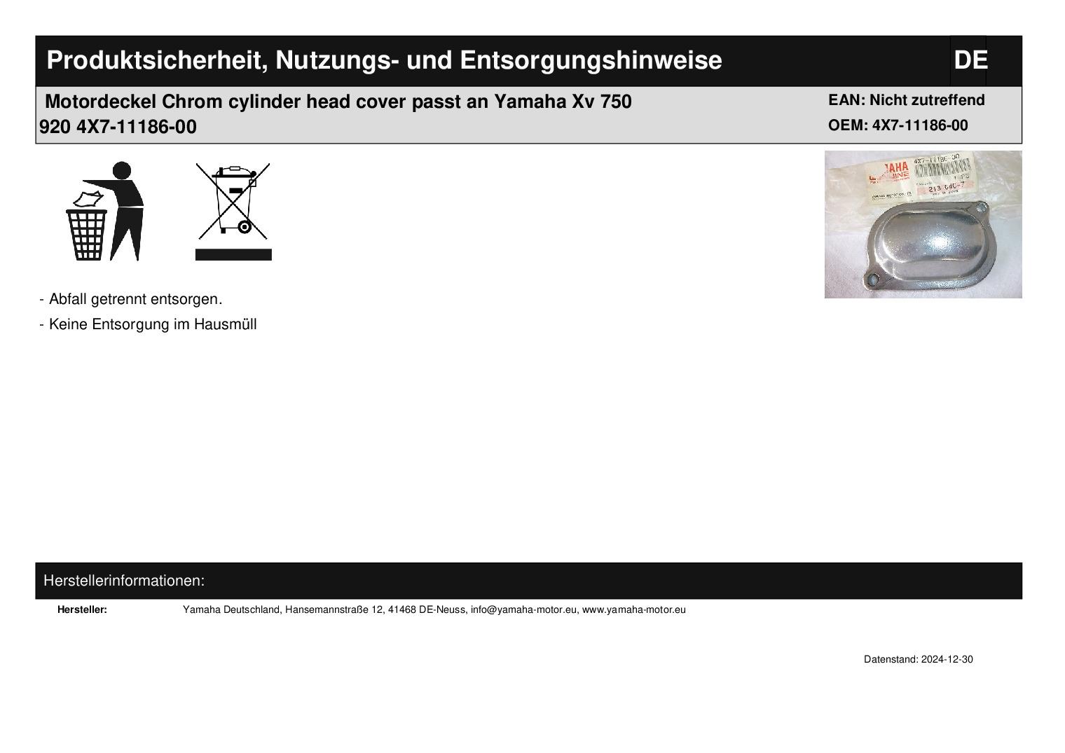 Titel: Motordeckel Chrom cylinder head cover passt an Yamaha Xv 750 920 4X7-11186-00