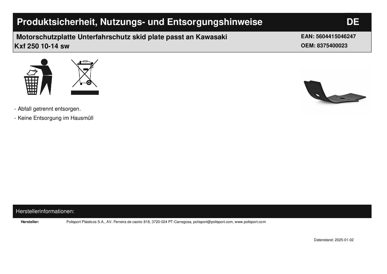 In dieser Auktion gibt es folgenden Artikel zu kaufen: Motorschutzplatte (siehe Foto) Modell: passend für Kawasaki KXF 250 Bj.: 2010 - 2014 (4-Takt) Lieferumfang: Motorschutz mit Anbauteilen und Anbauanleitung Artikelzustand: neu Bei Unklarheiten oder Fragen bitte erst E-Mail schreiben.